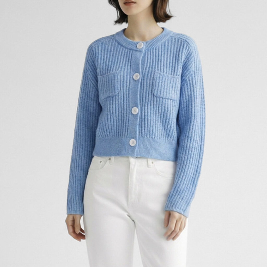 クロップドリブカーディガン 綺麗なライトブルーが目を惹くカー...