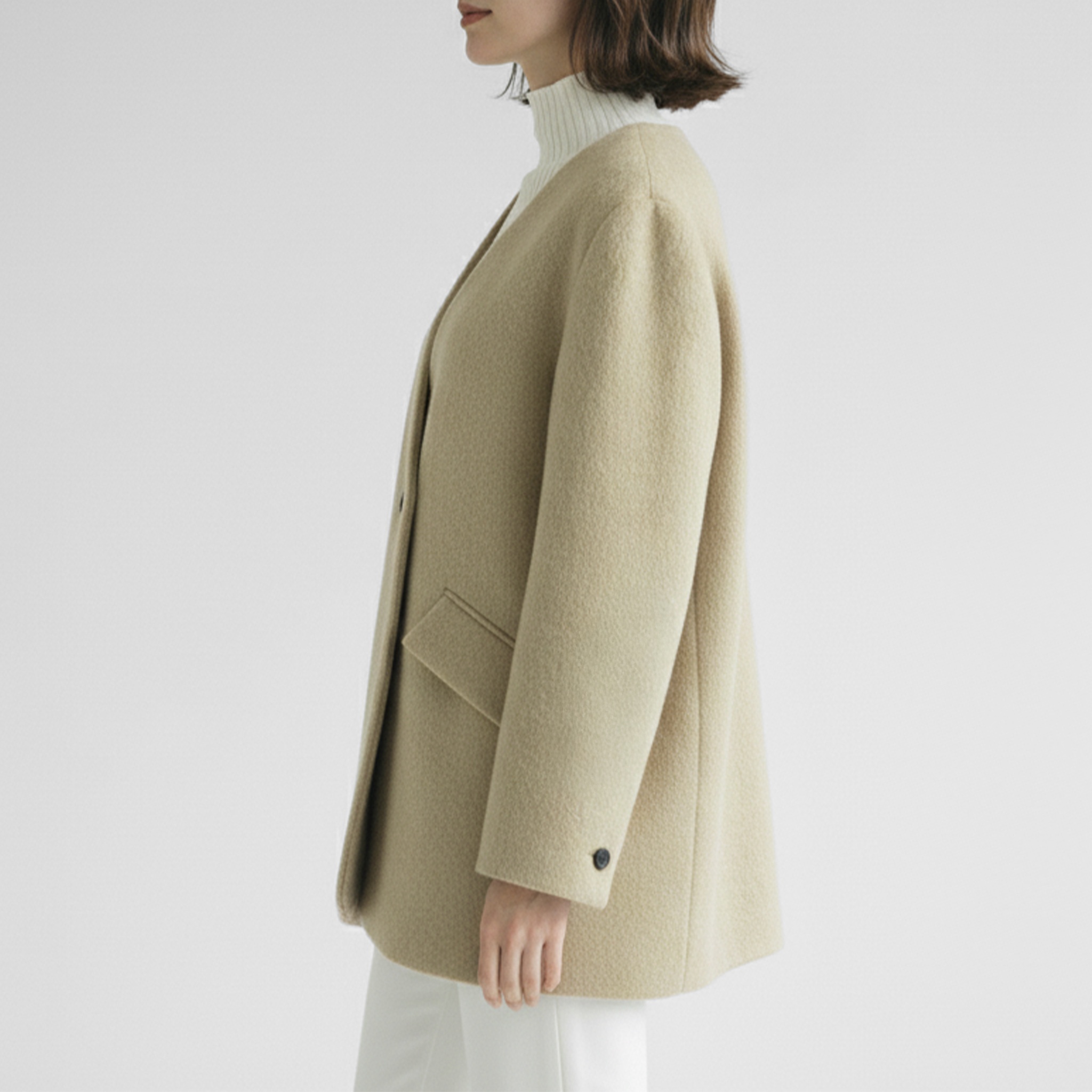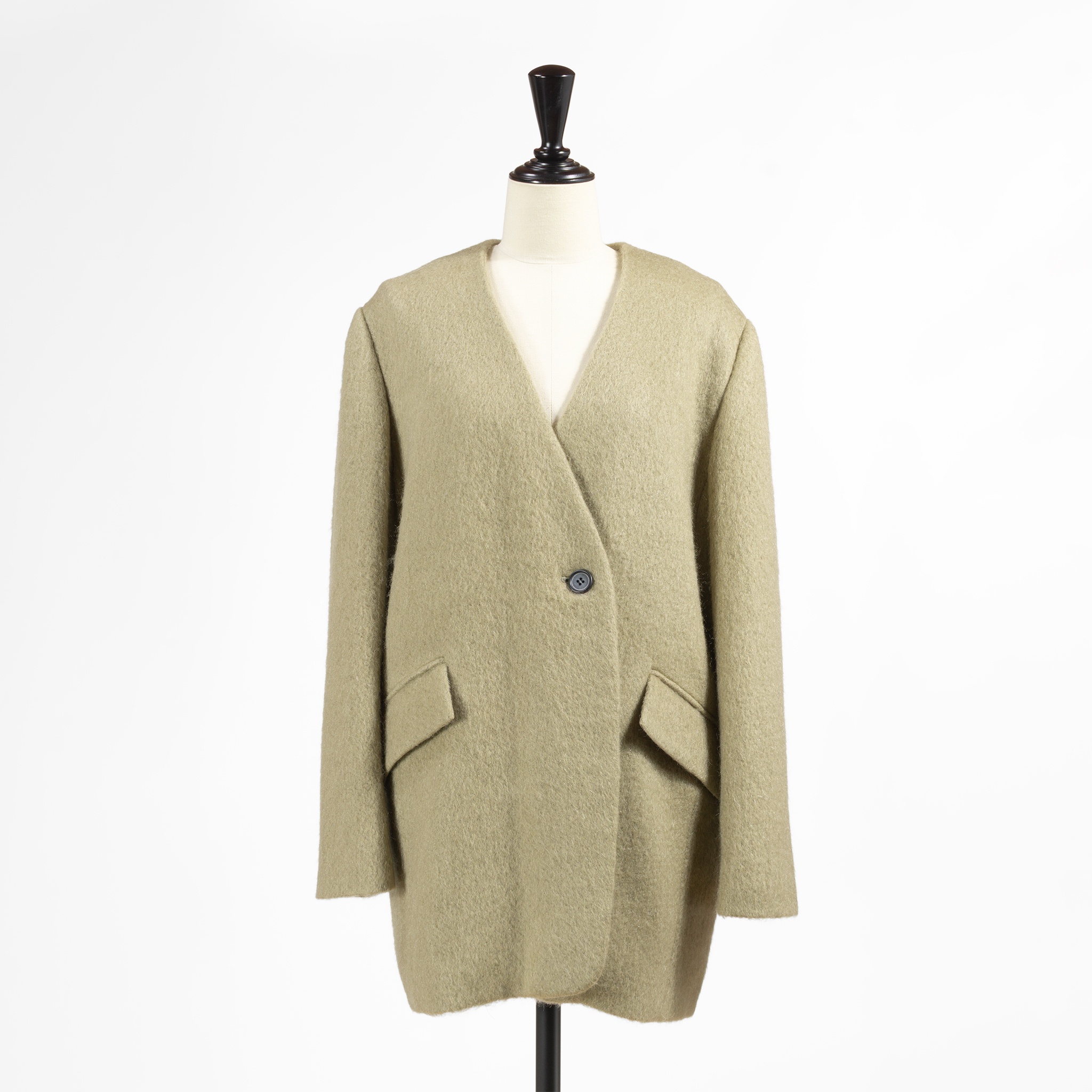 ■商品名:ノーカラーウールモヘヤショートコート