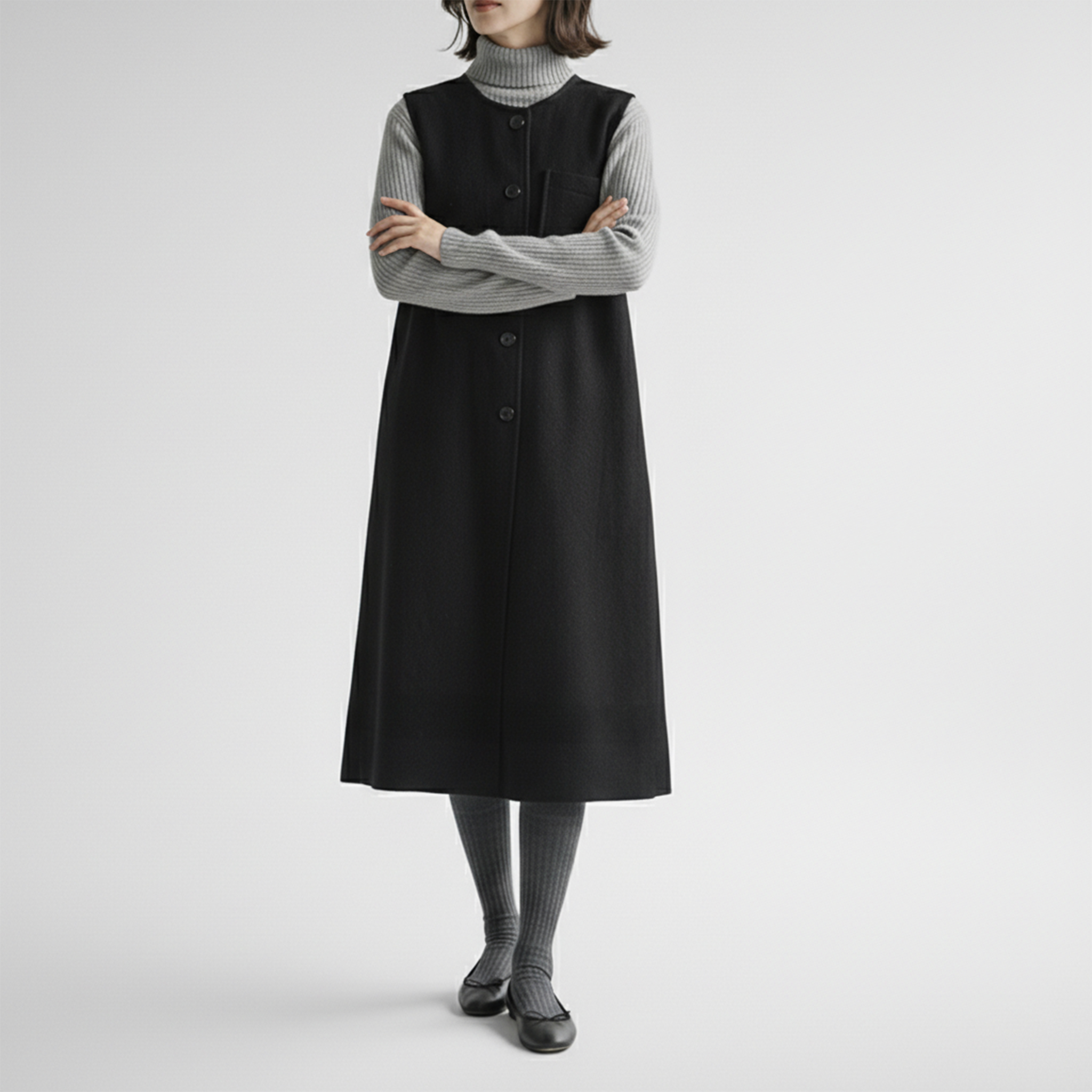 SARAHWEARのロングセラージャンパースカート「Becky」の冬バージョン「フェルトウール ジャンパースカート」です