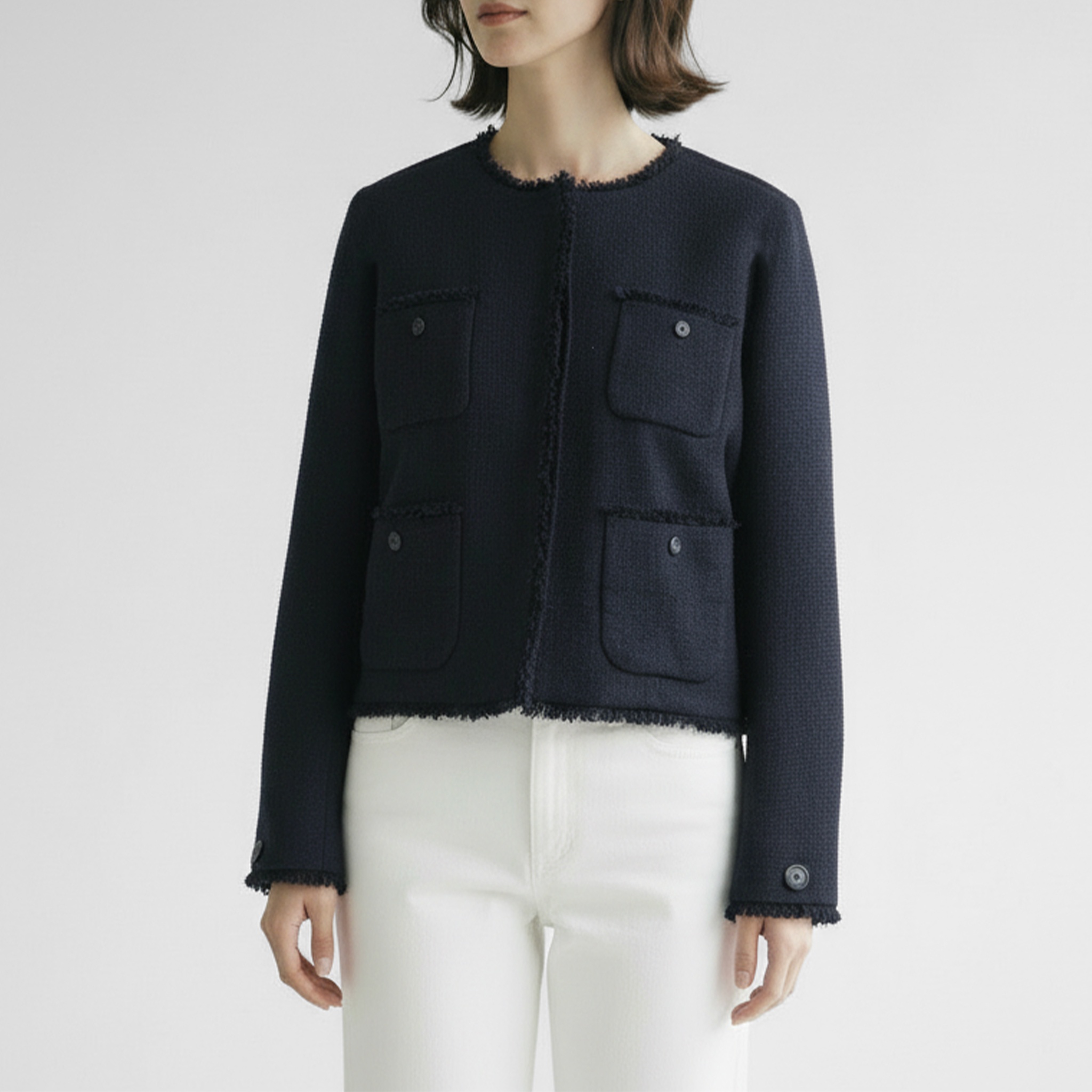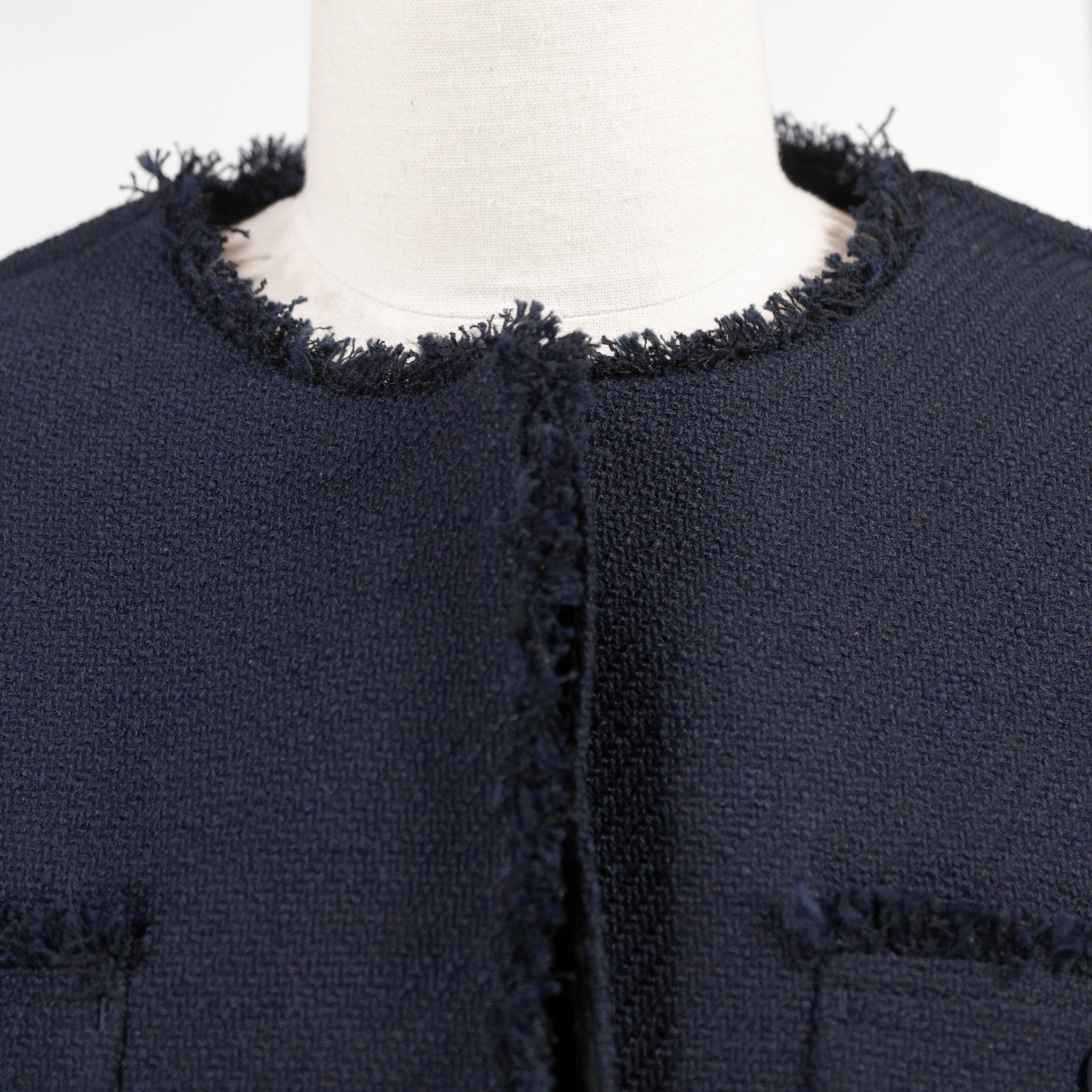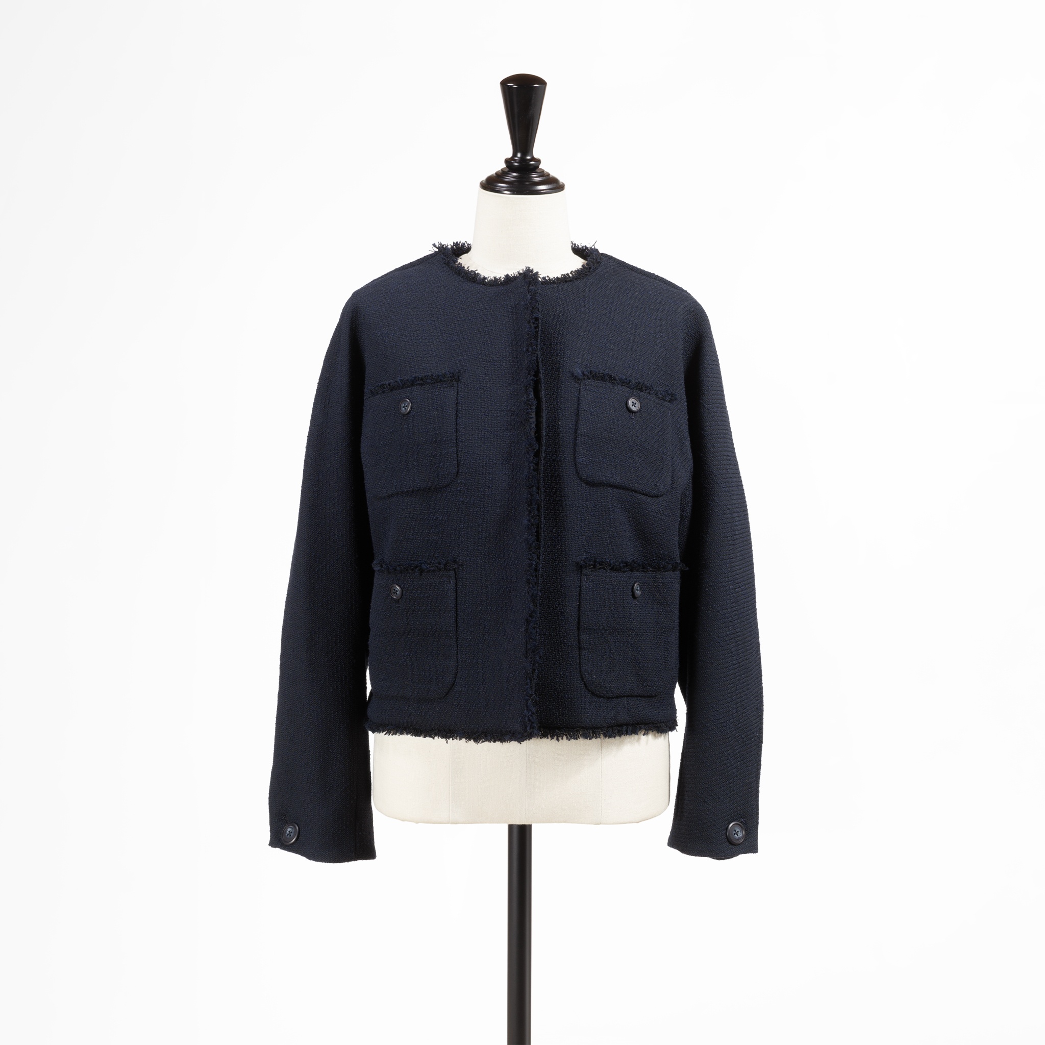 ツイード調のニュアンス感のある生地を使用したノーカラージャケットです