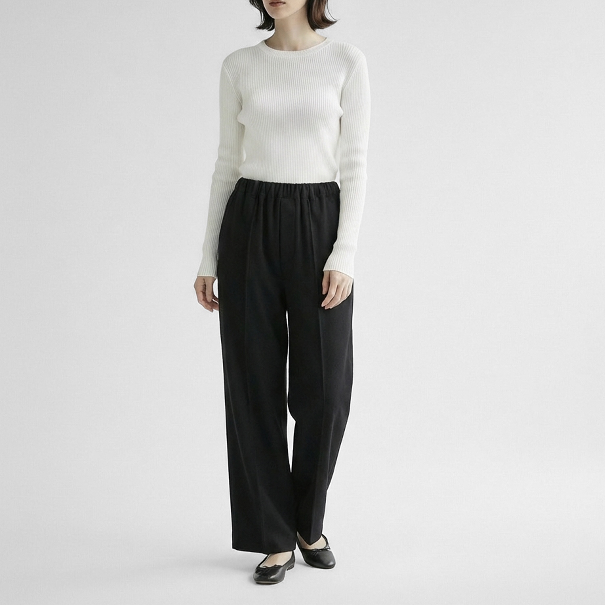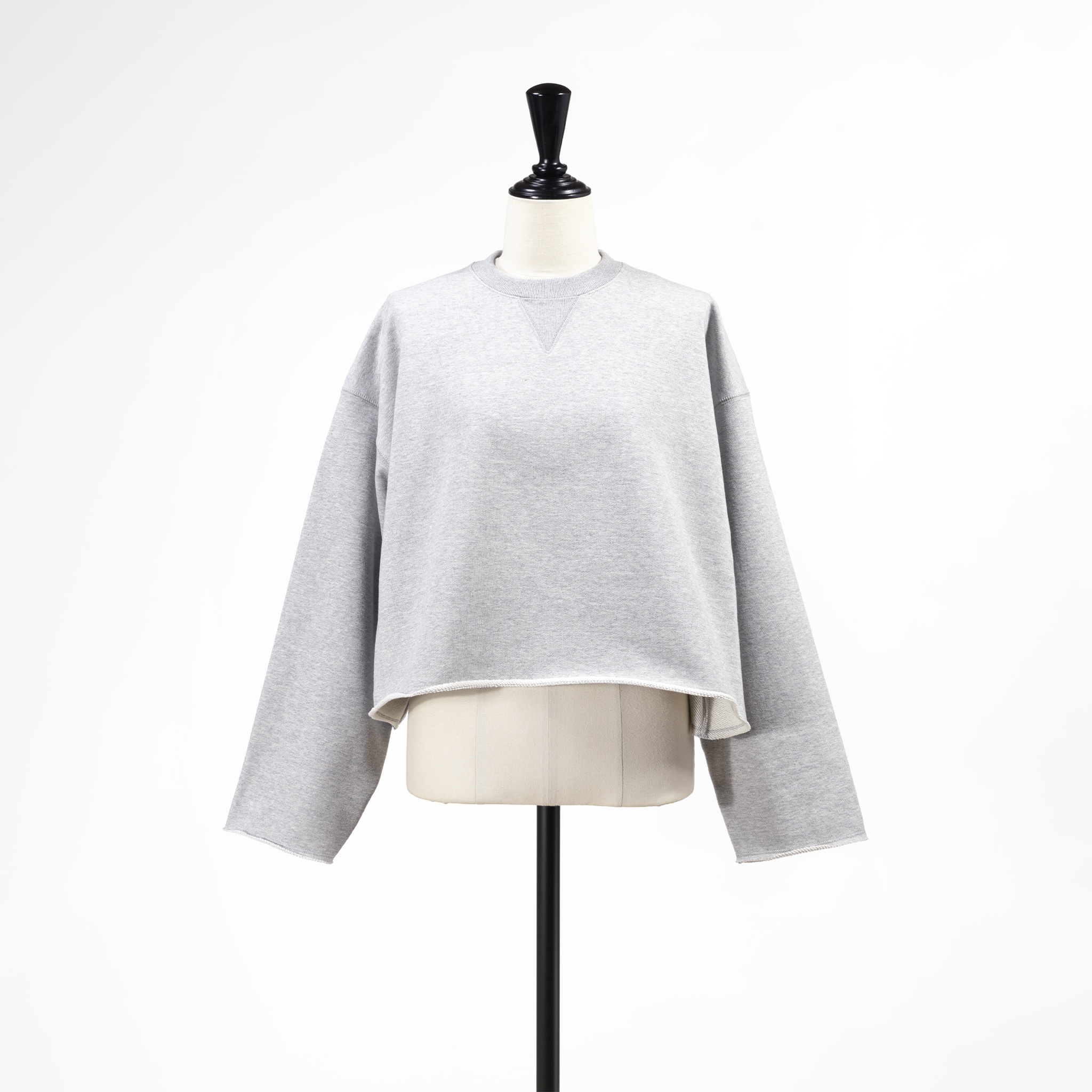 SACRAから届いた新作は、スッキリとしたクロップド丈と長めに設定された袖がモードな雰囲気を演出するスウェットトップス