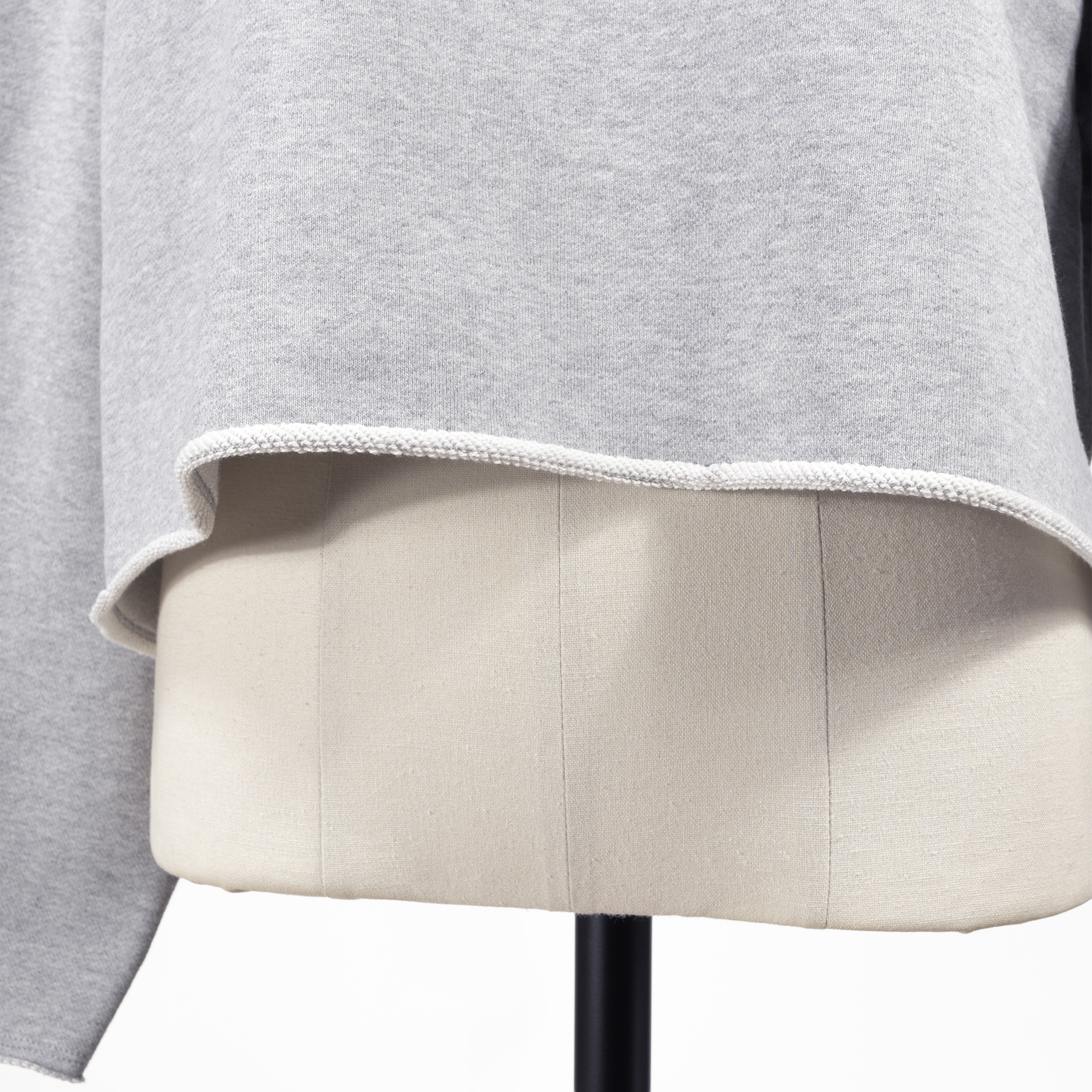 袖口と裾は裁ち切りディテールになっていて、カジュアルなスウェットにこなれた抜け感をプラスしています