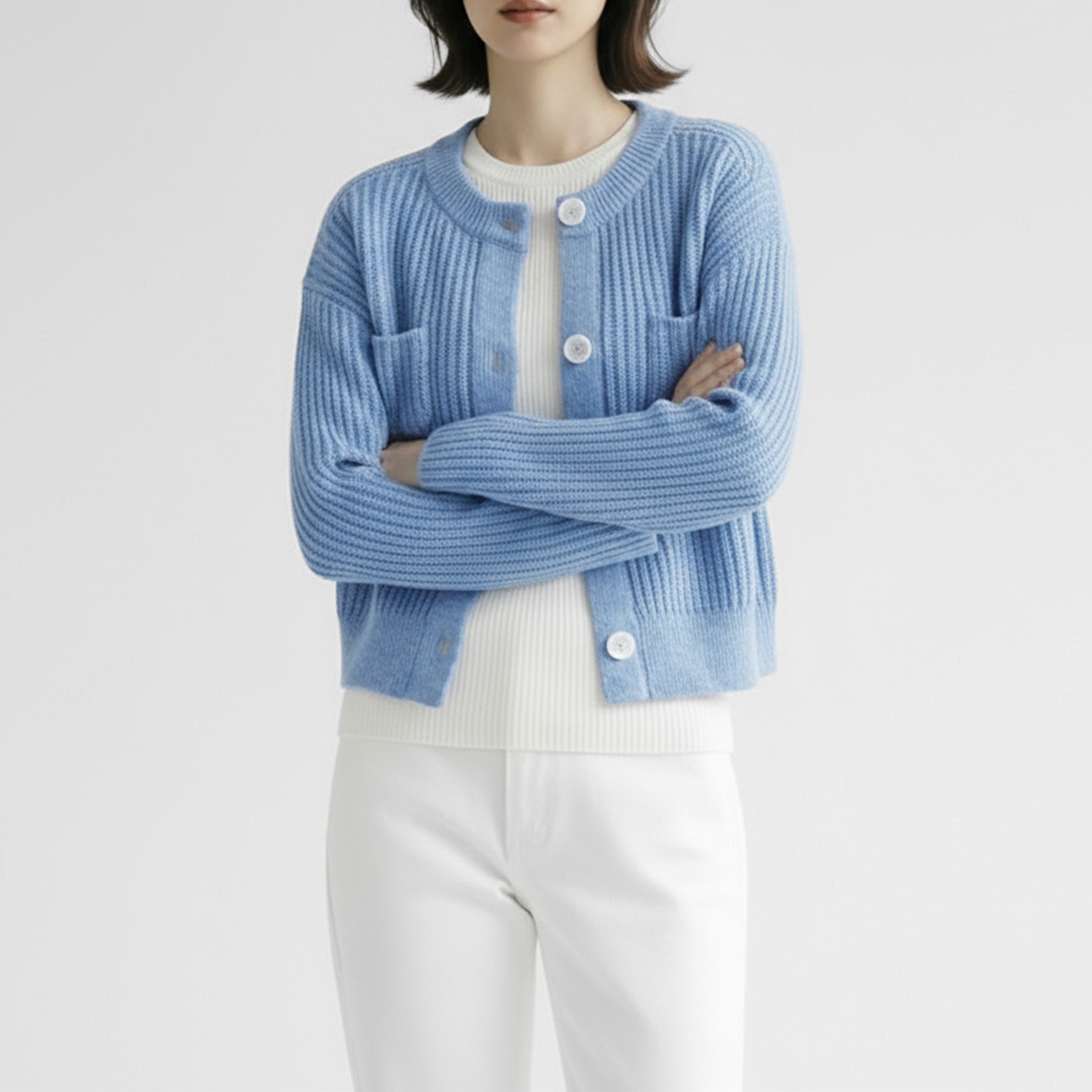 ボタンを留めてプルオーバーニットとしても着こなせて、コーディネートの幅をグッと広げてくれます