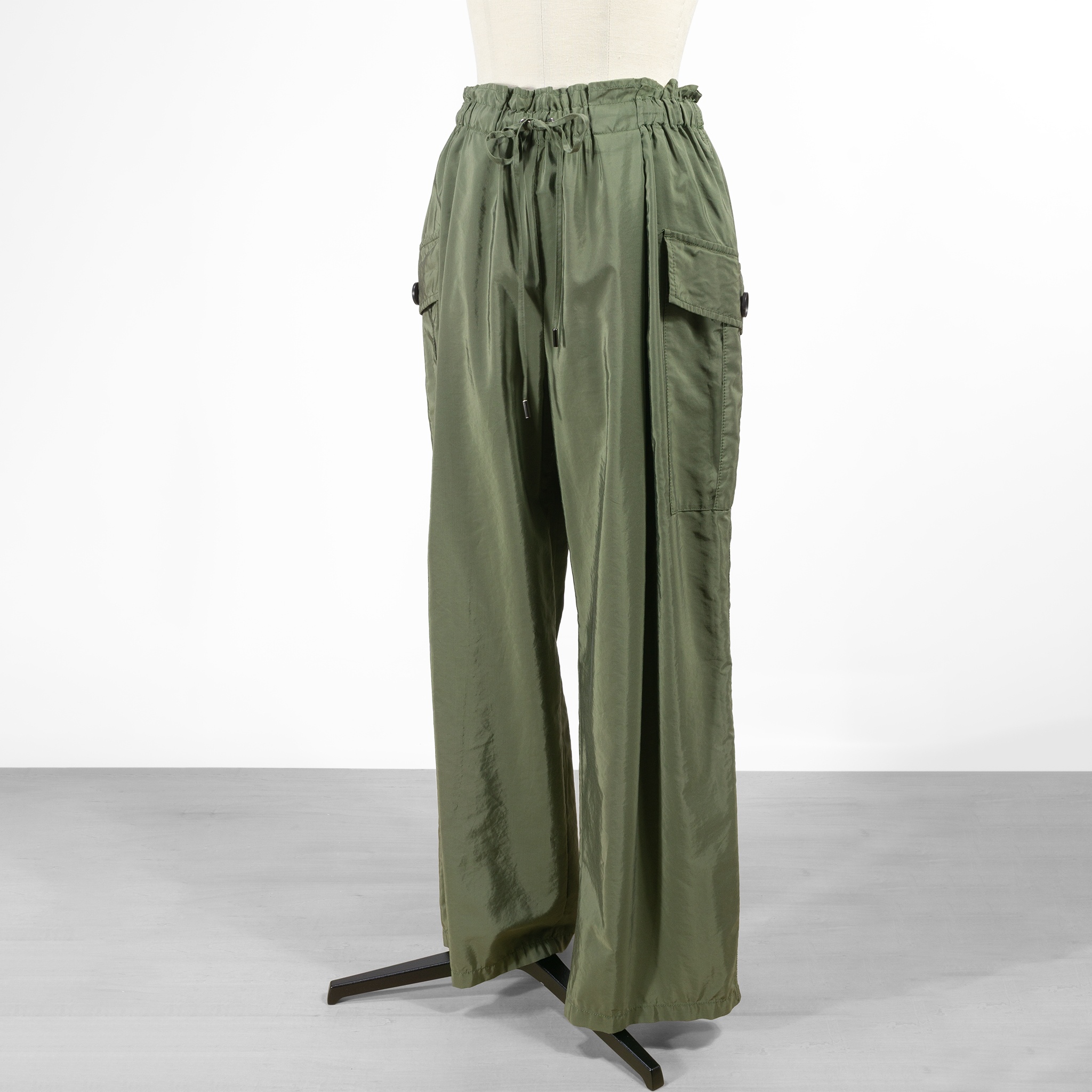 カーゴパンツというとカジュアルなイメージですが、生地の光沢感がドレッシーな印象のため、キレイめのコーディネートとも好相性
