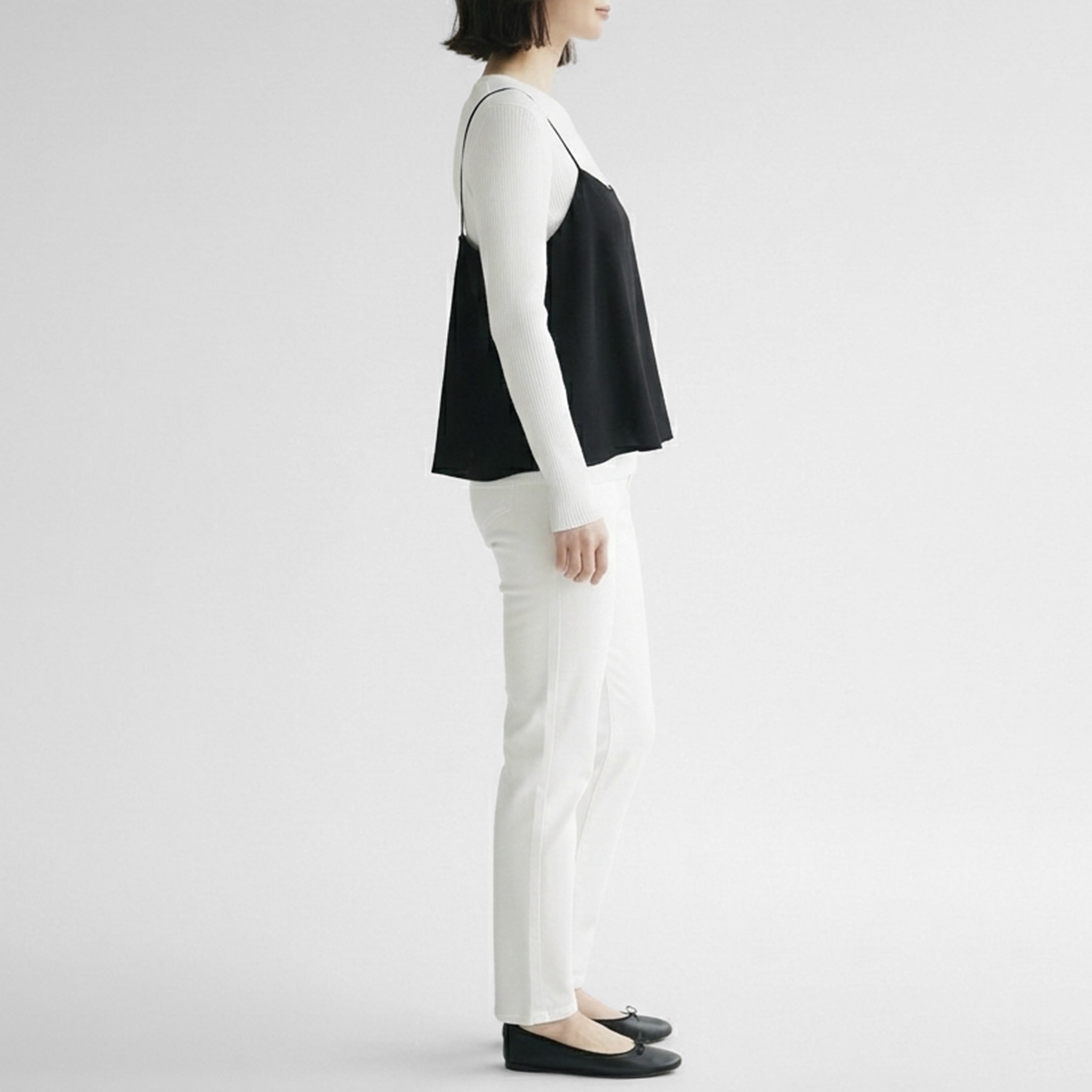 ゆとりをもたせて作られているので、カットソーやブラウスとのレイヤードもしやすくなっています