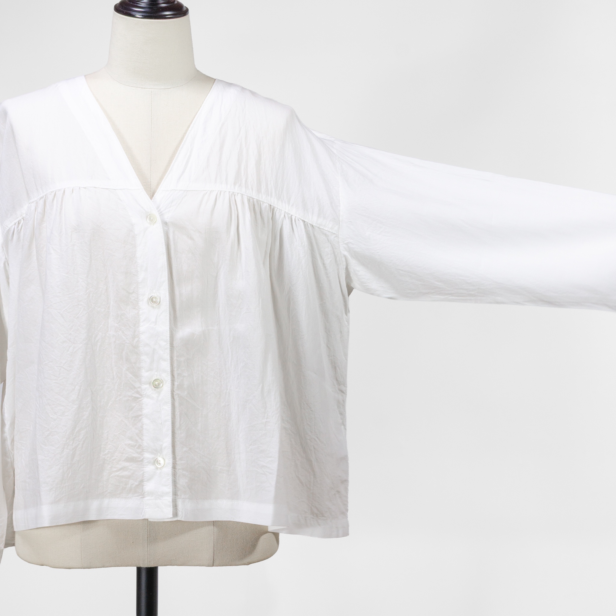 SARAHWEARから届いた新作は、ふんわりとした女性らしいシルエットが魅力的なVネックブラウス