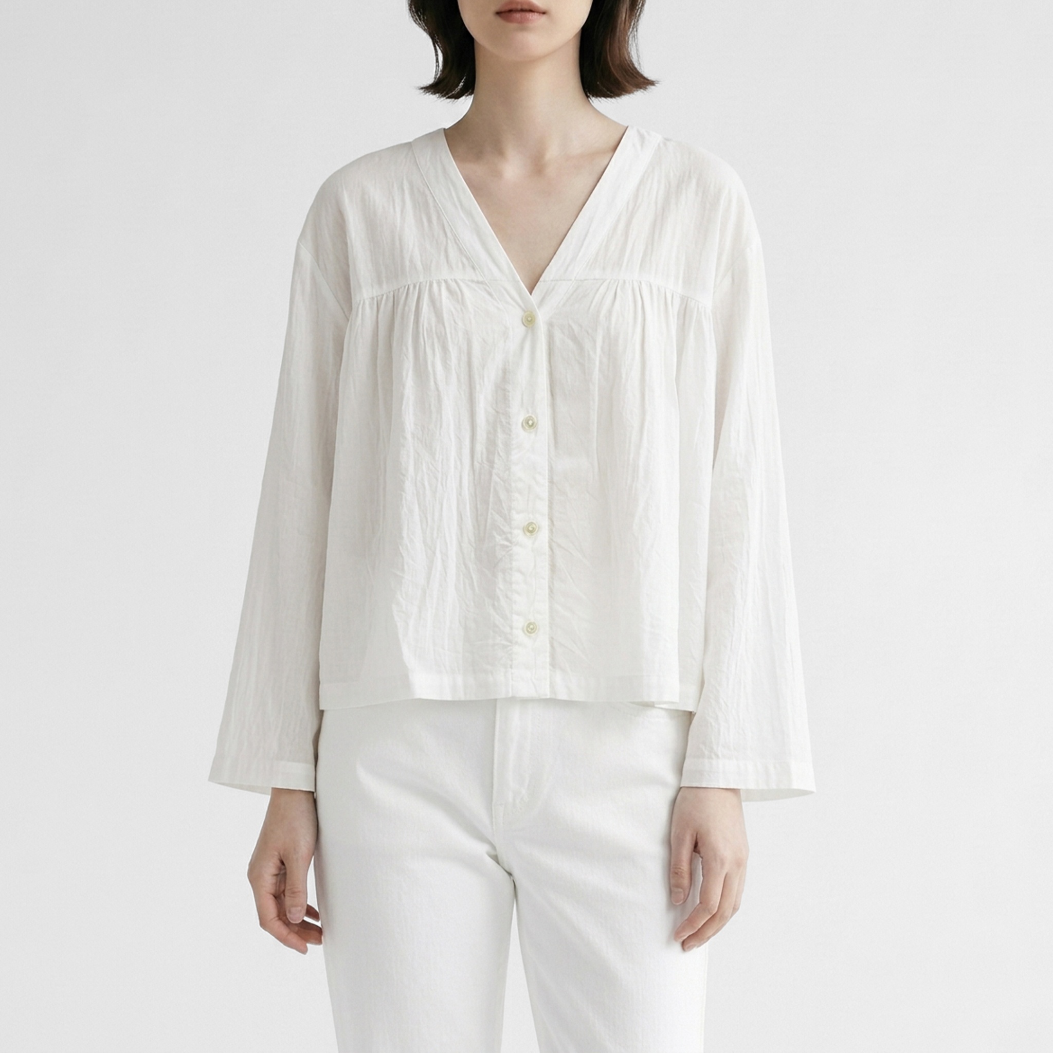 SARAHWEARから届いた新作は、ふんわりとした女性らしいシルエットが魅力的なVネックブラウス
