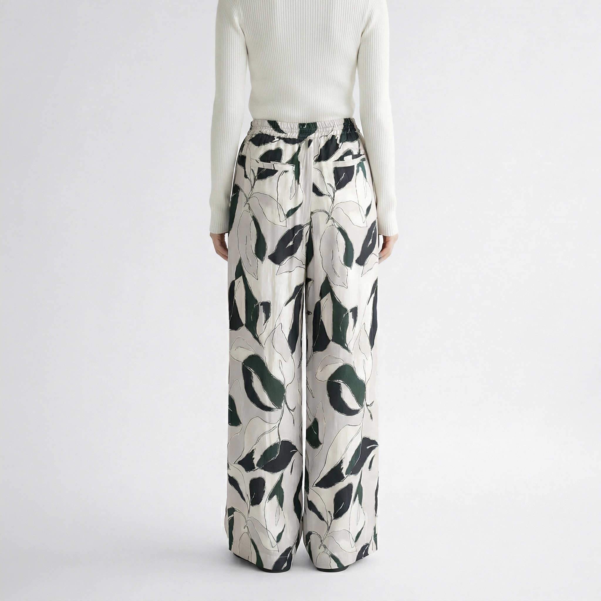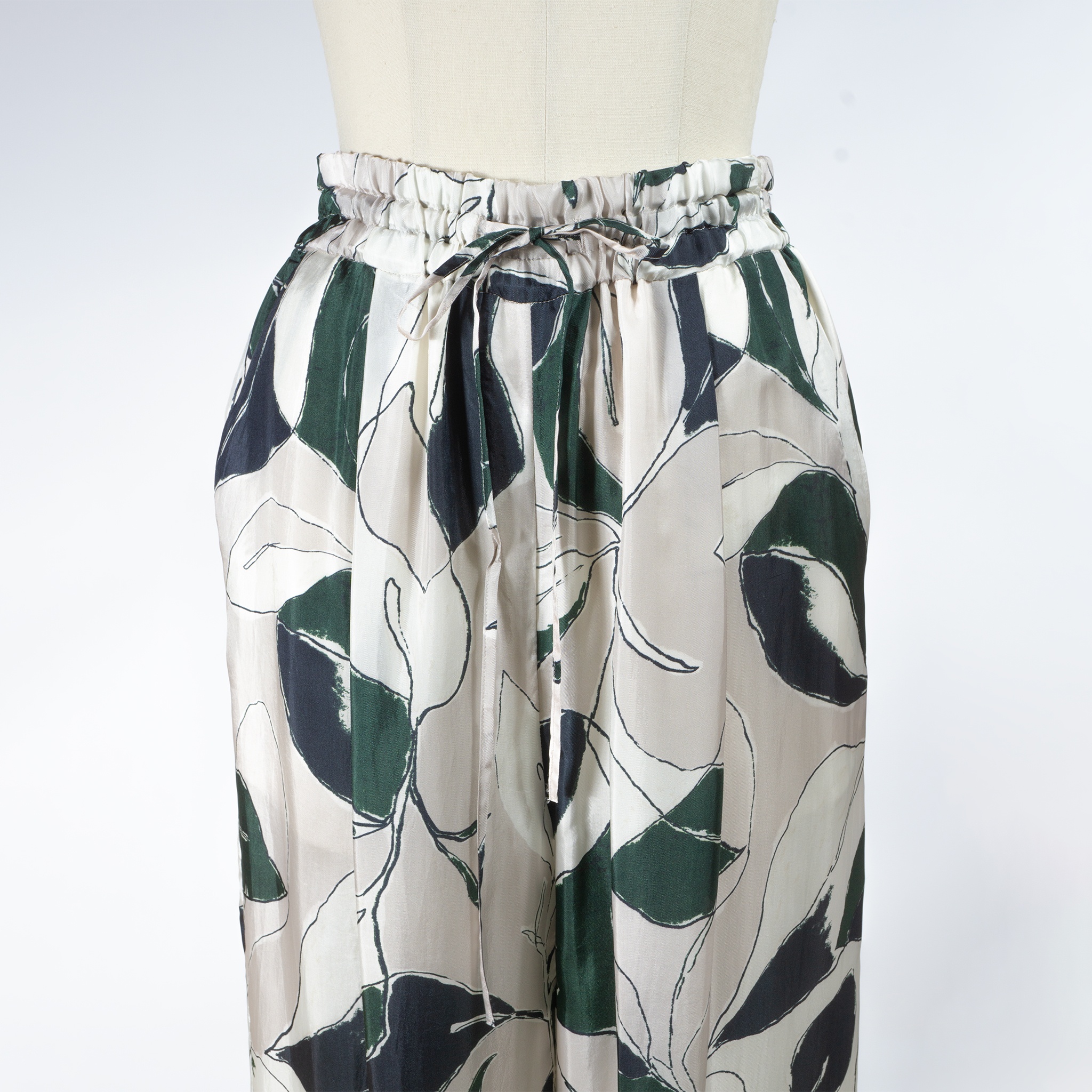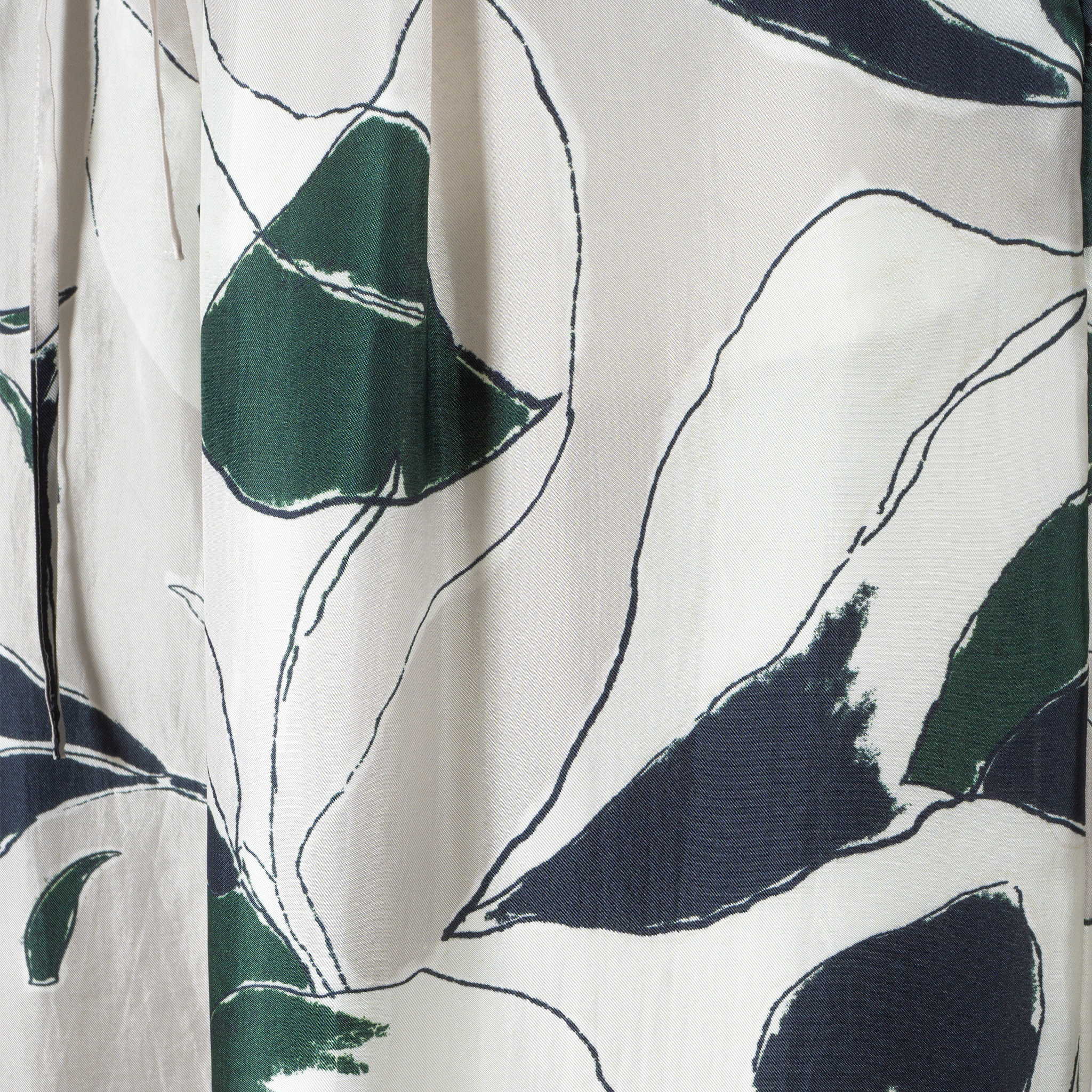今季は、モスグリーンが品よく映える手書き風のリーフ柄