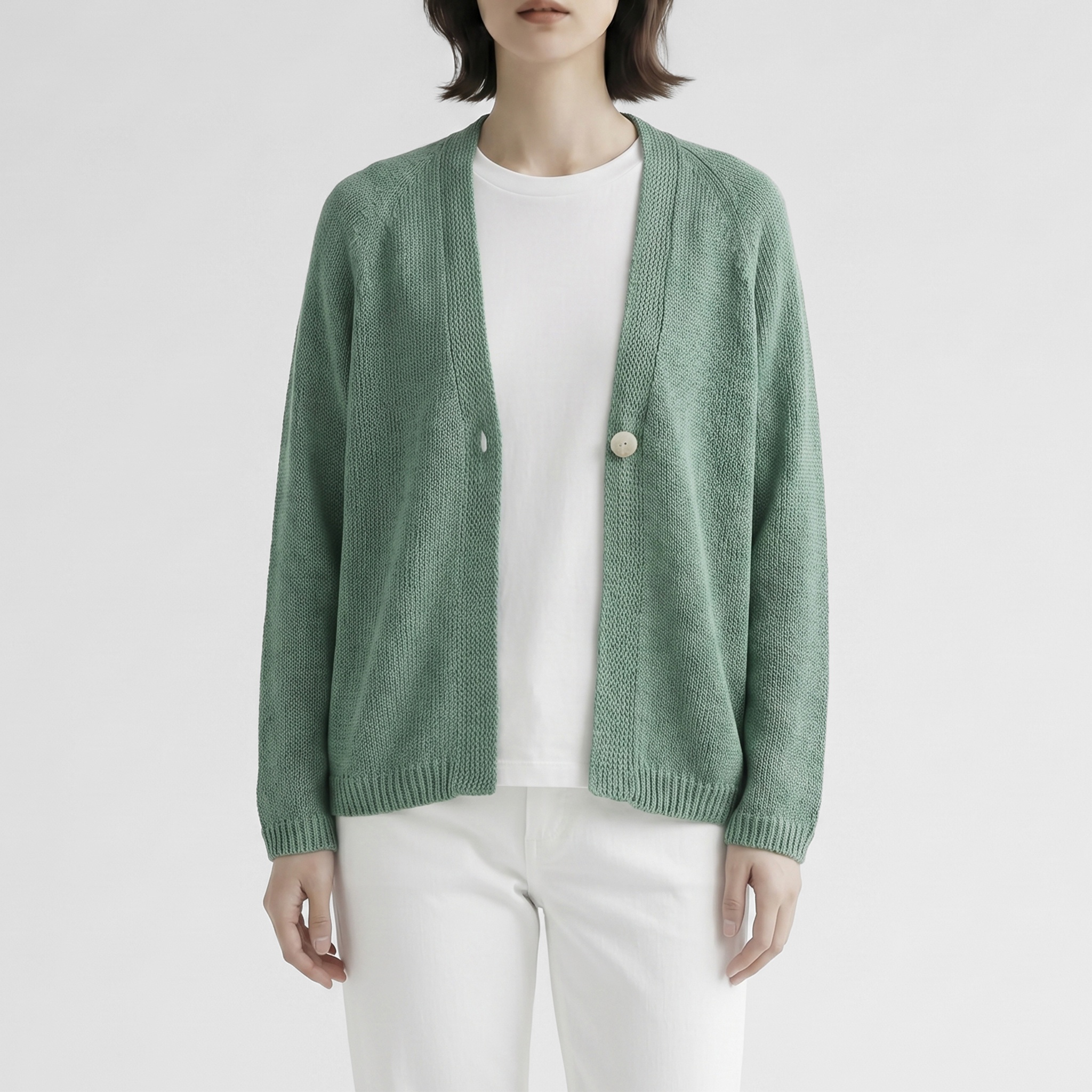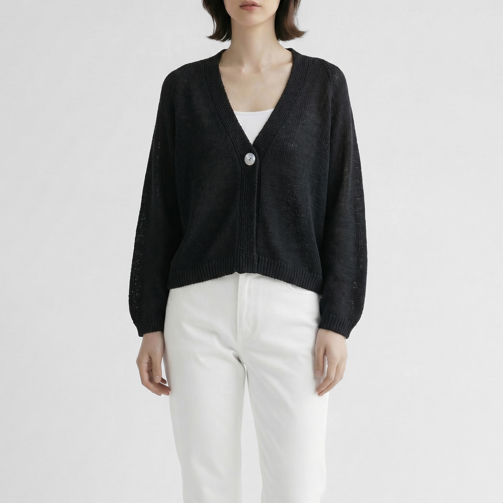 ボレロのようなスッキリとした着丈がポイントで、パンツやスカートはもちろん、ワンピースやサロペットなど、どんな装いにも合わせることができます