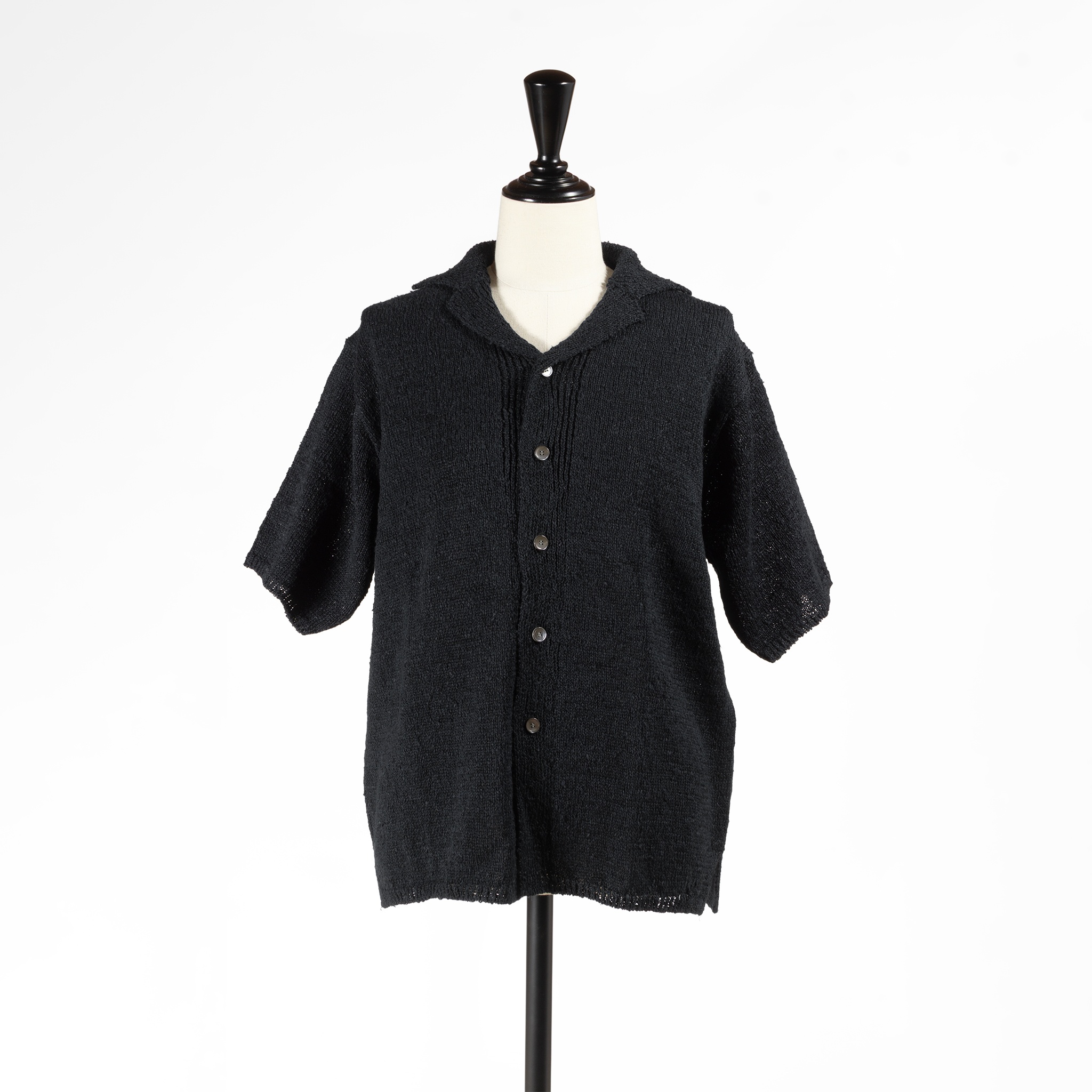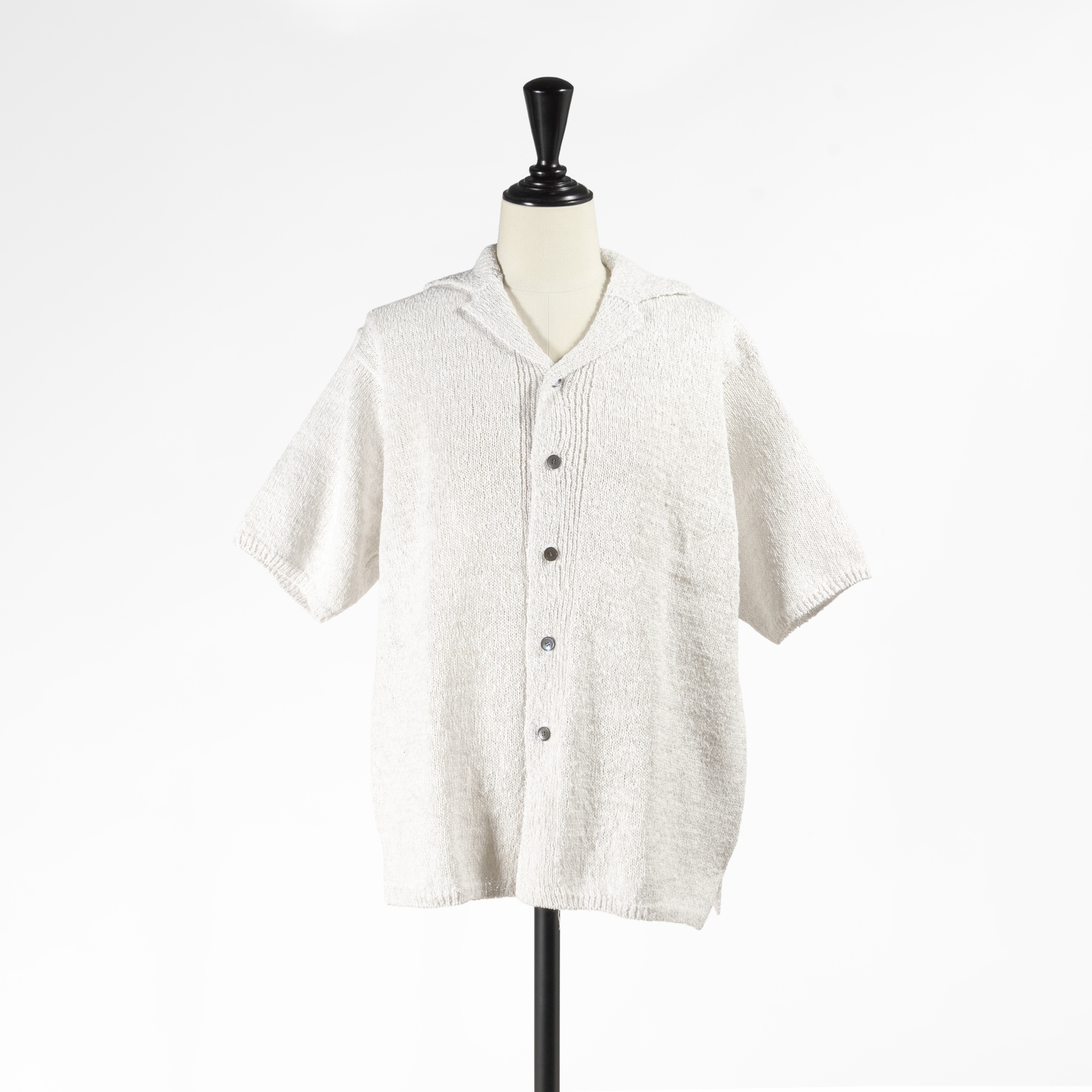 同ブランドから届いた新作は、まるでリネンのようなシャリ感のある肌触りが特徴のギマ(疑麻)コットンを使用したニットシャツです
