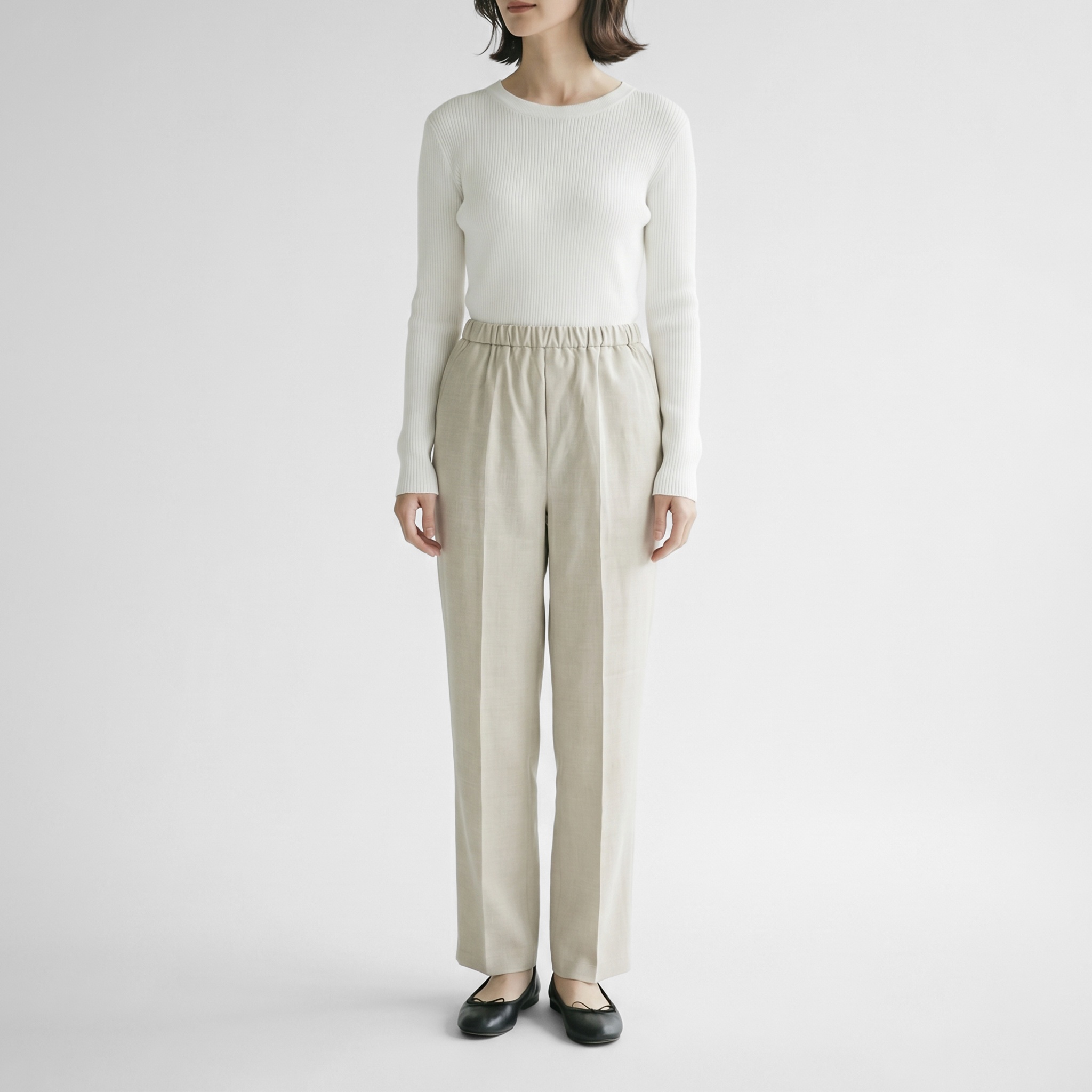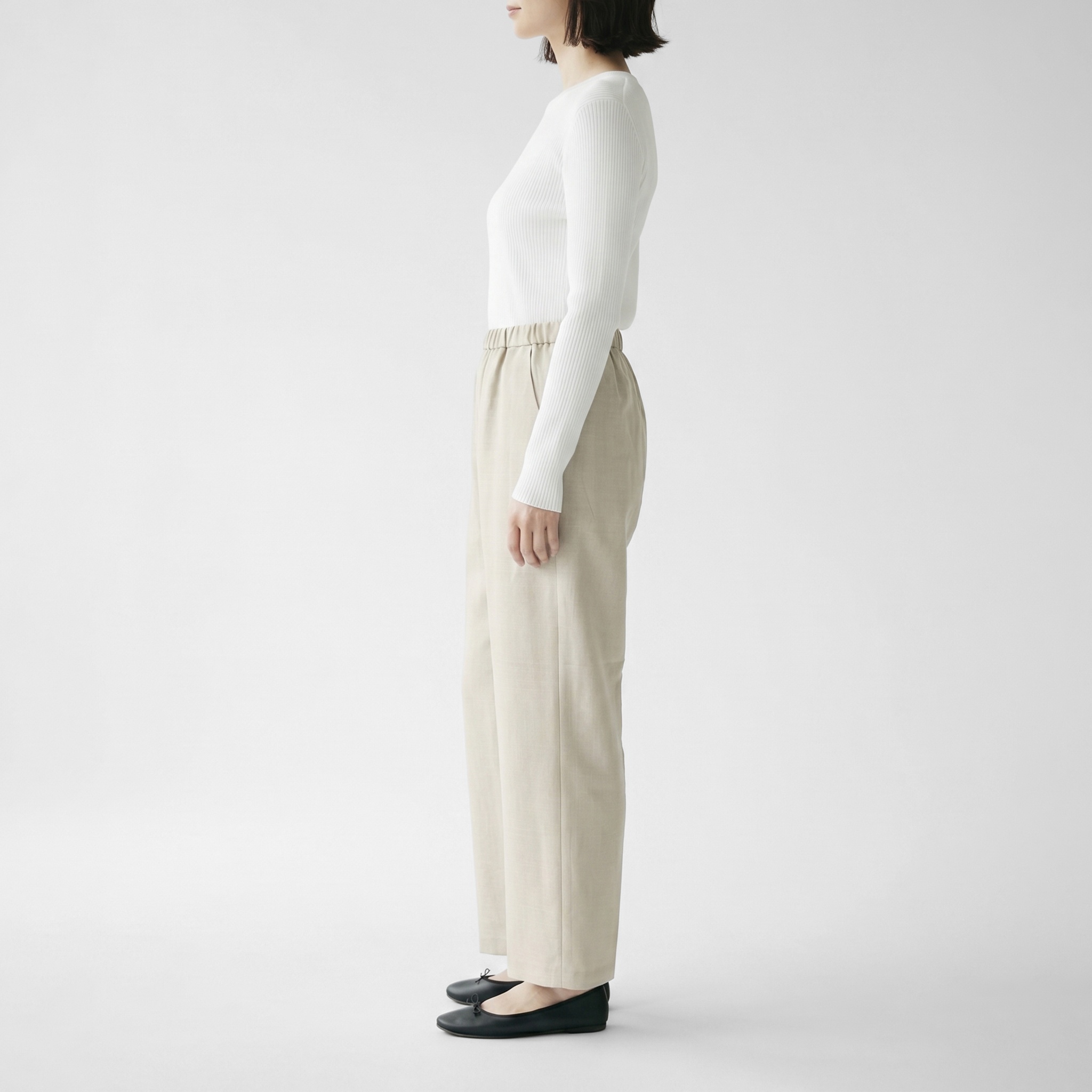 ウエストゴムでラクにはけつつキレイめのスタイリングにも合わせられるので、オンオフ問わず着回すことができます