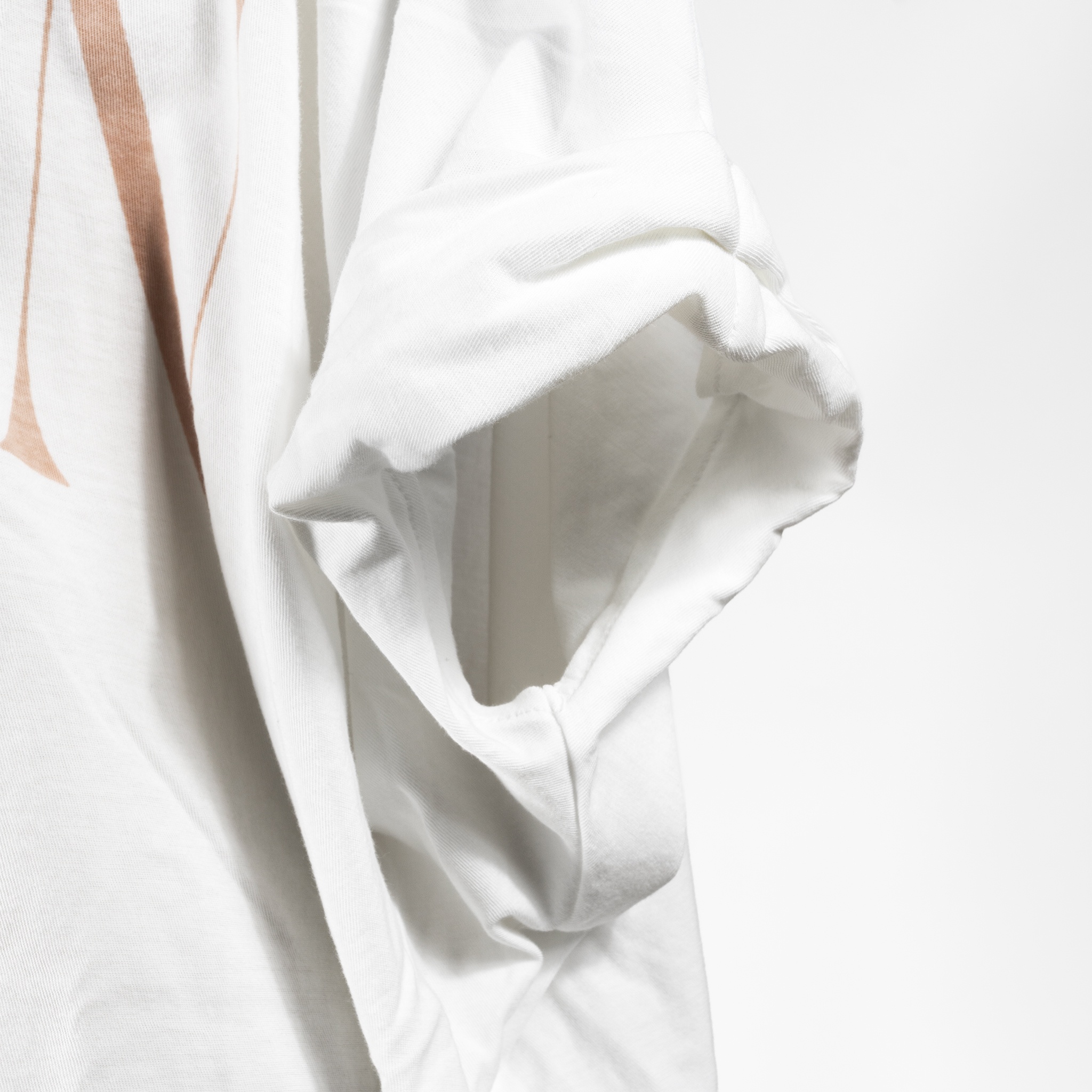 ロールアップ仕様になった袖とフロントのプリントもポイントになった、デザイン性の高い1着です