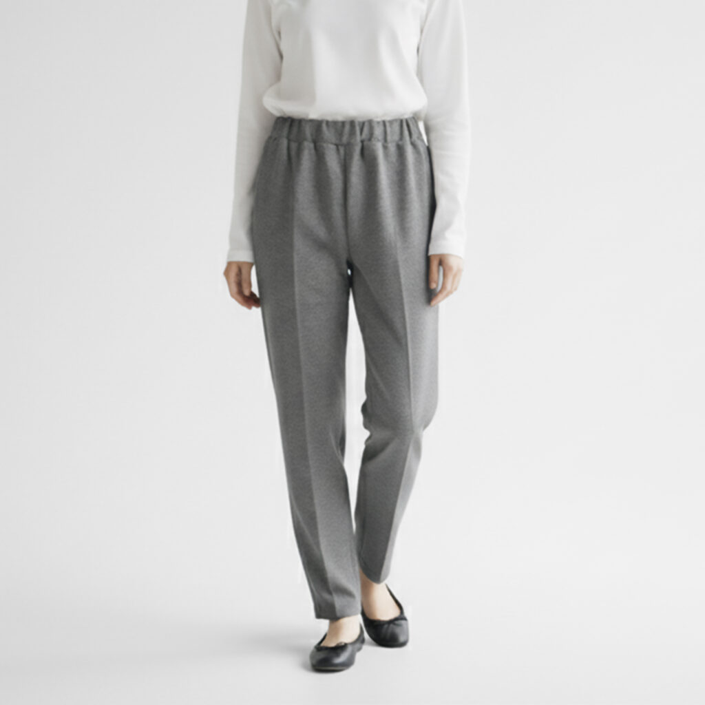 かなり高めのハイライズが腰まわりカバーして、ウエストの細見えを実現