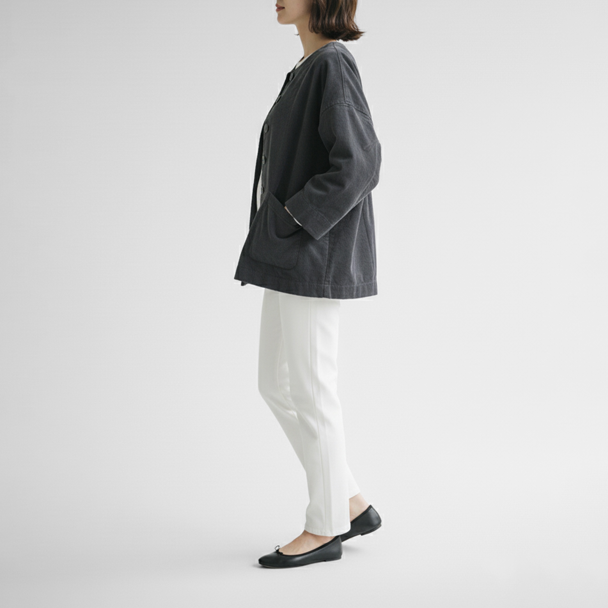 重苦しさもなくサッと着らるので、季節の変わり目の軽い羽織りにピッタリです