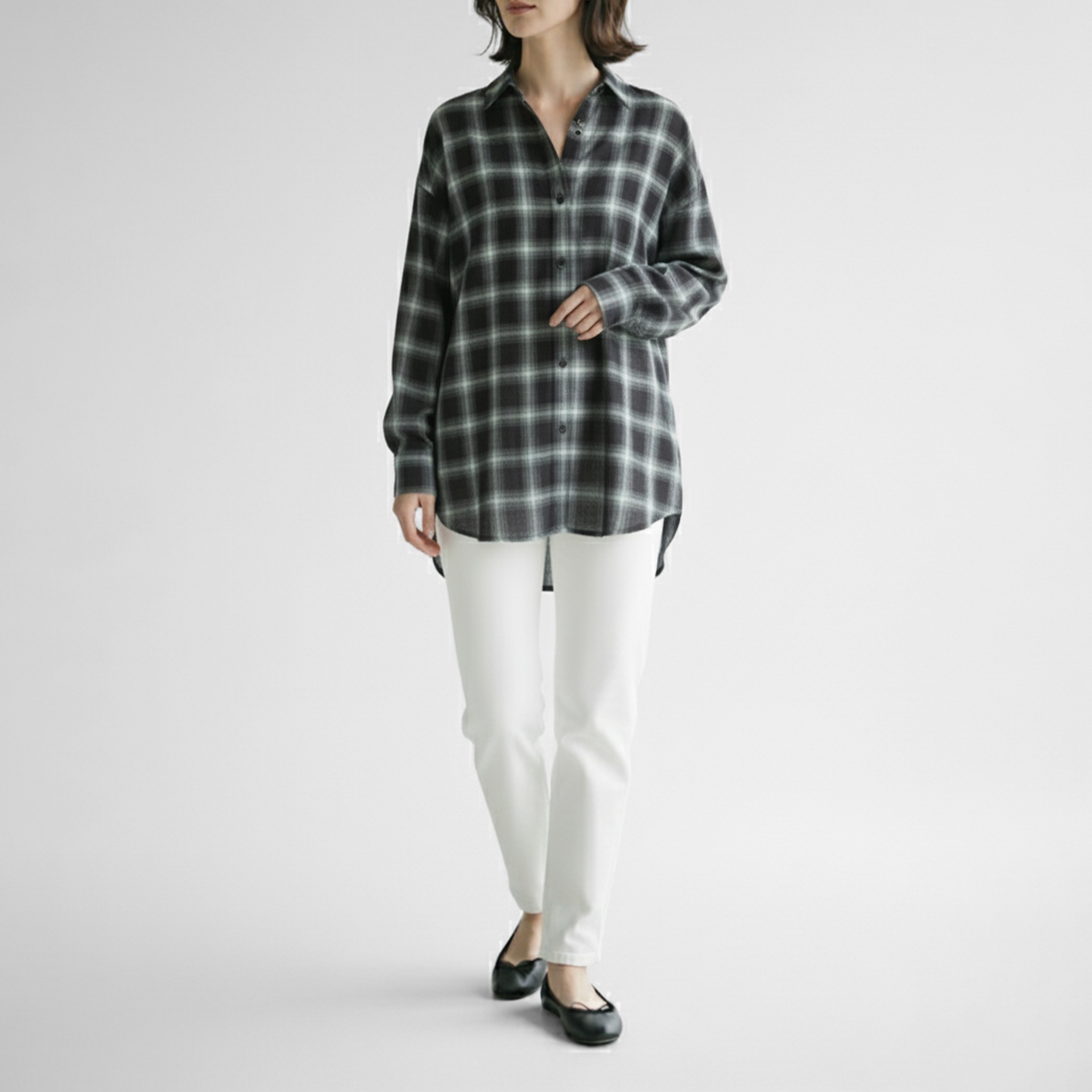 ゆったりとしたシルエットと長めの着丈が特長的なビッグシャツ