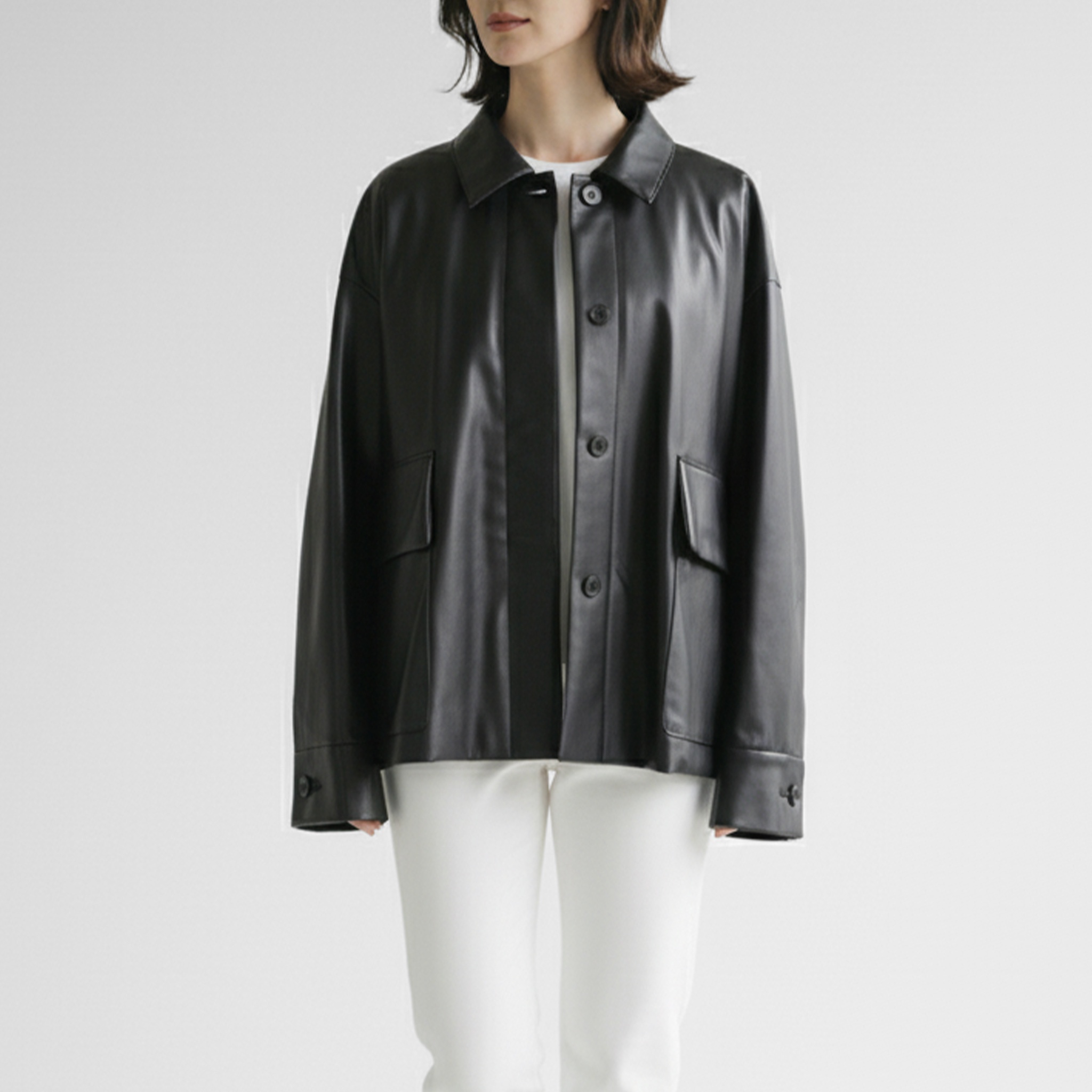 【ミズイロインド】気軽に羽織れてカッコいいエコレザーシャツジャケット
