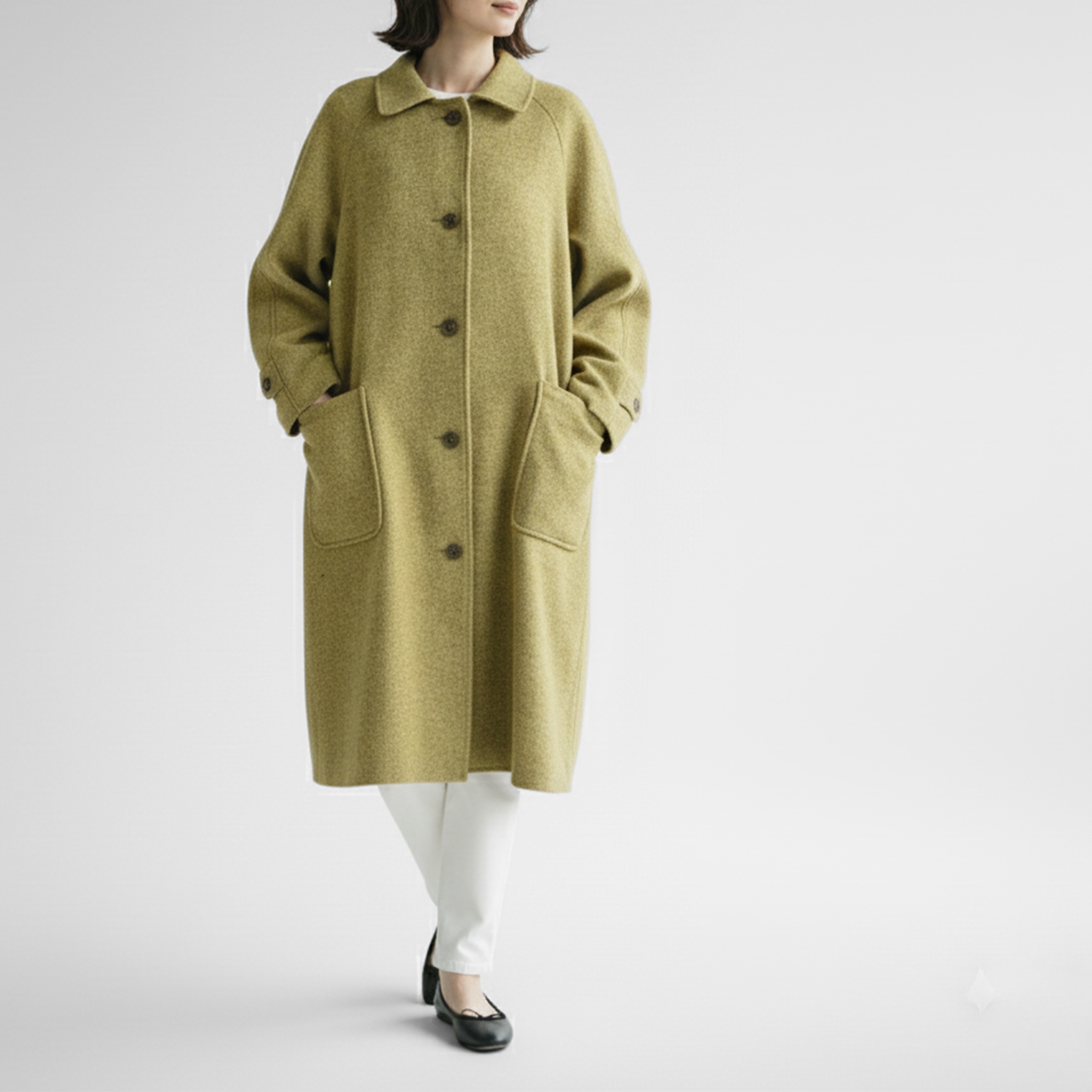 流行に左右されないデザインと上質な素材使い、さらに体型の変化も気にならないゆったりとしたシルエットで、長く愛用いただけるタイムレスなコートです!