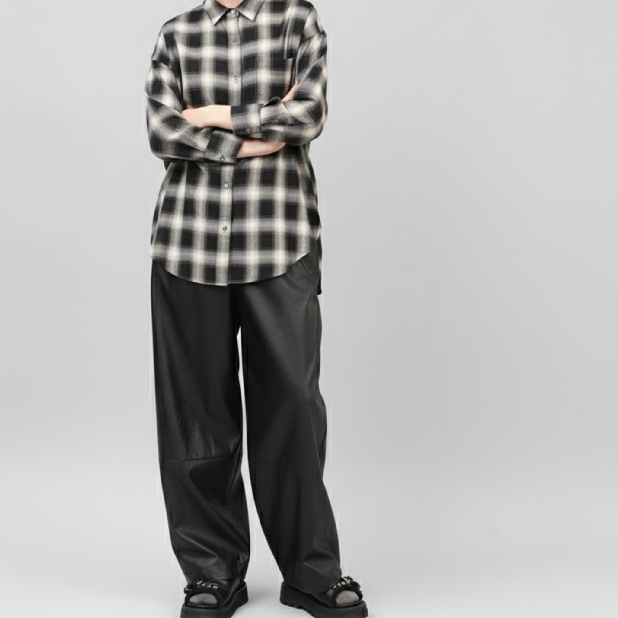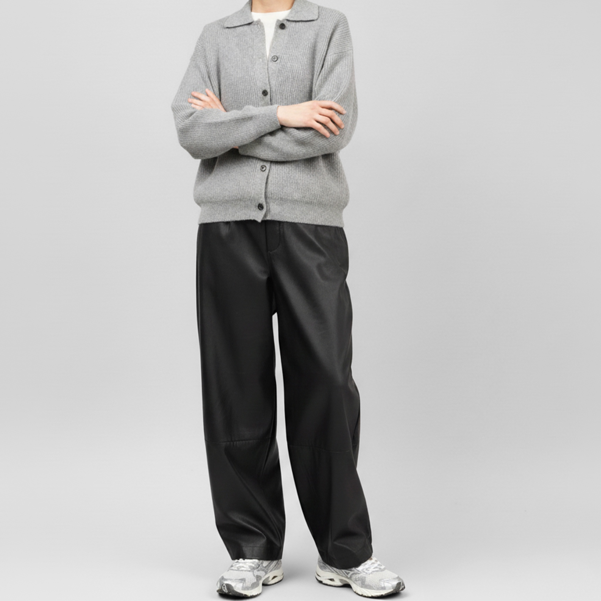 着用難易度が高くて敬遠しがちなレザーパンツを、気軽にコーディネートにプラスできます
