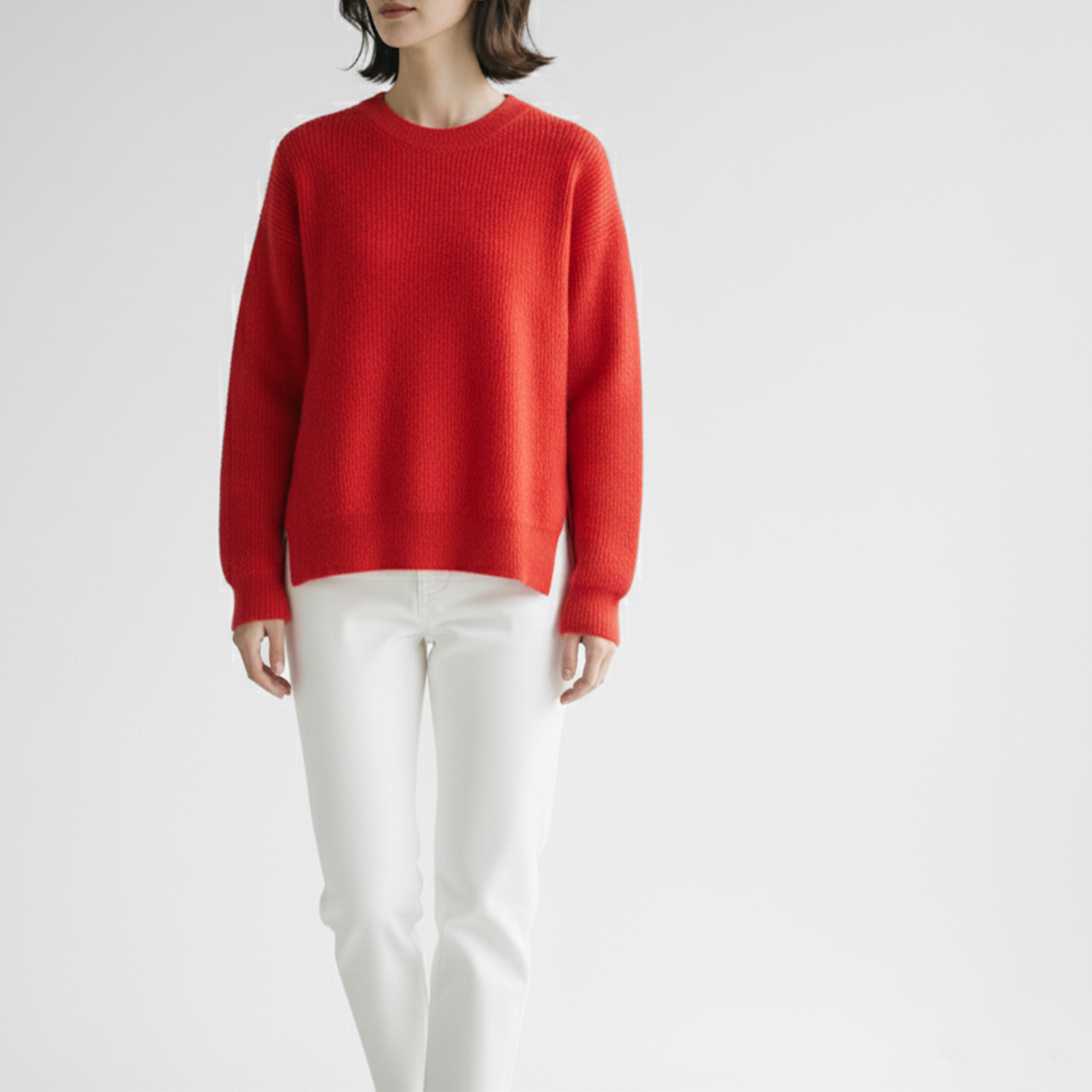 素材には、カシミヤ4大産地の一つアルランシャンで採取されたカシミヤヤギと、ブルーフォックスを3:1の黄金比でブレンドした極上の糸を使用しています