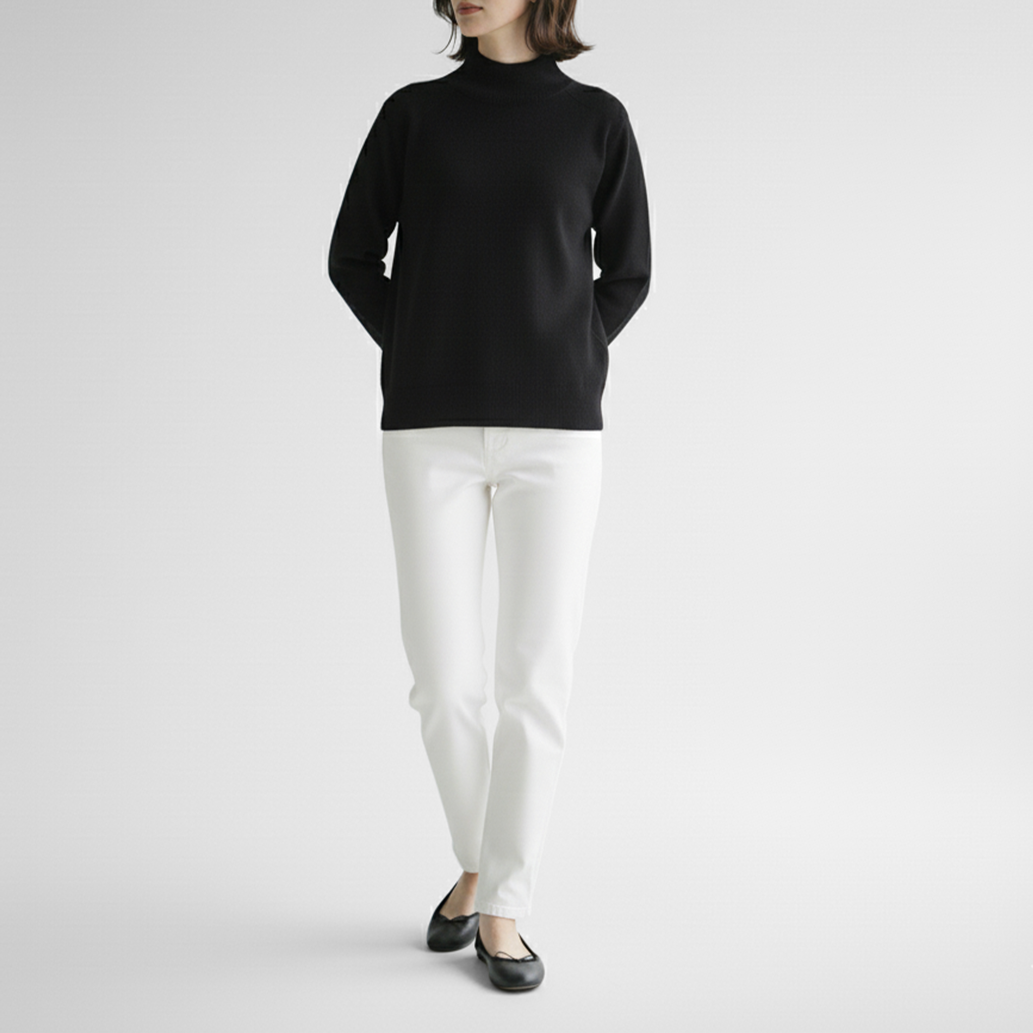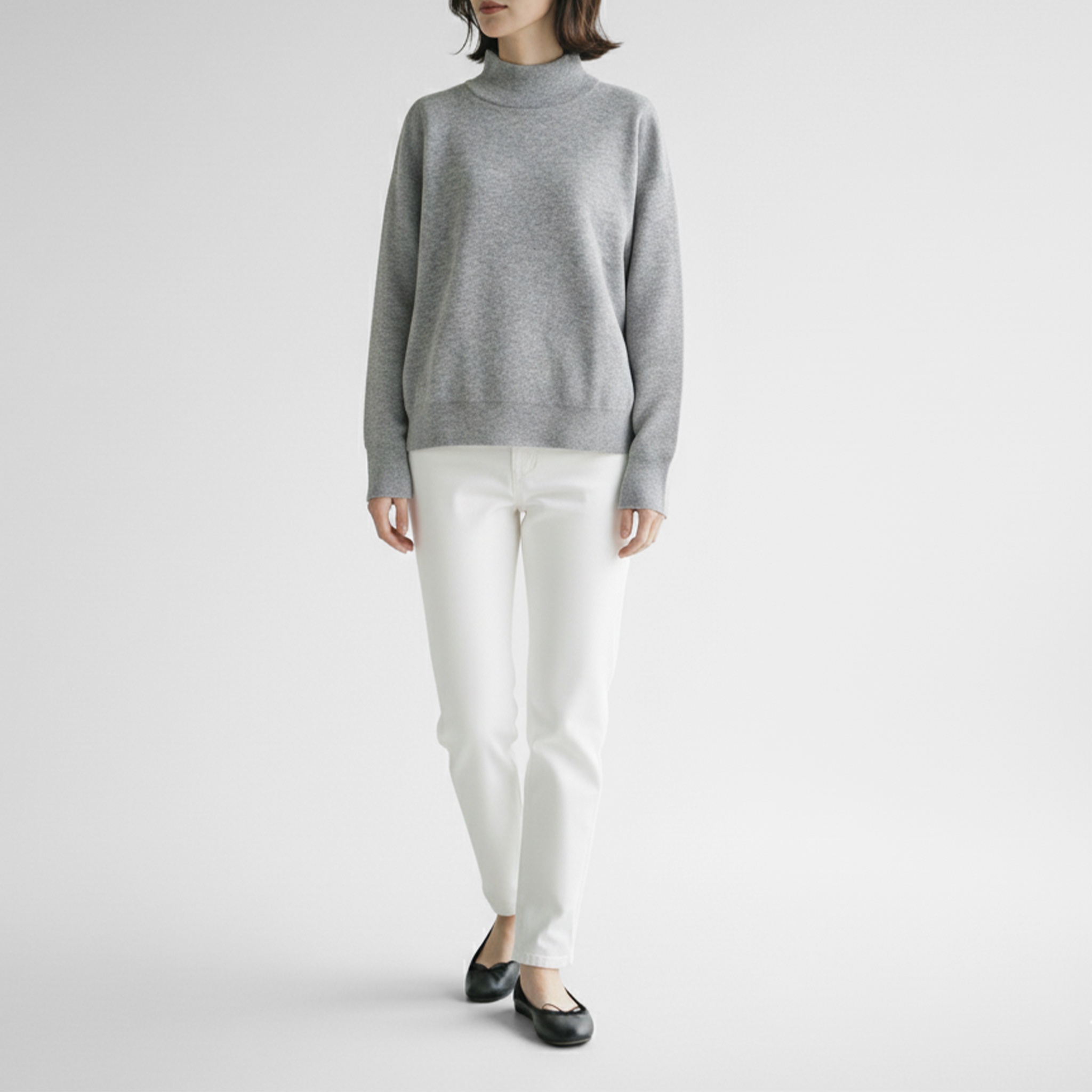 内モンゴル最東端に生息する希少なカシミヤヤギの繊維を使用し、BATONERが独自開発したカシミヤ糸として編みたてた、他にはない特別なモックネックニットです