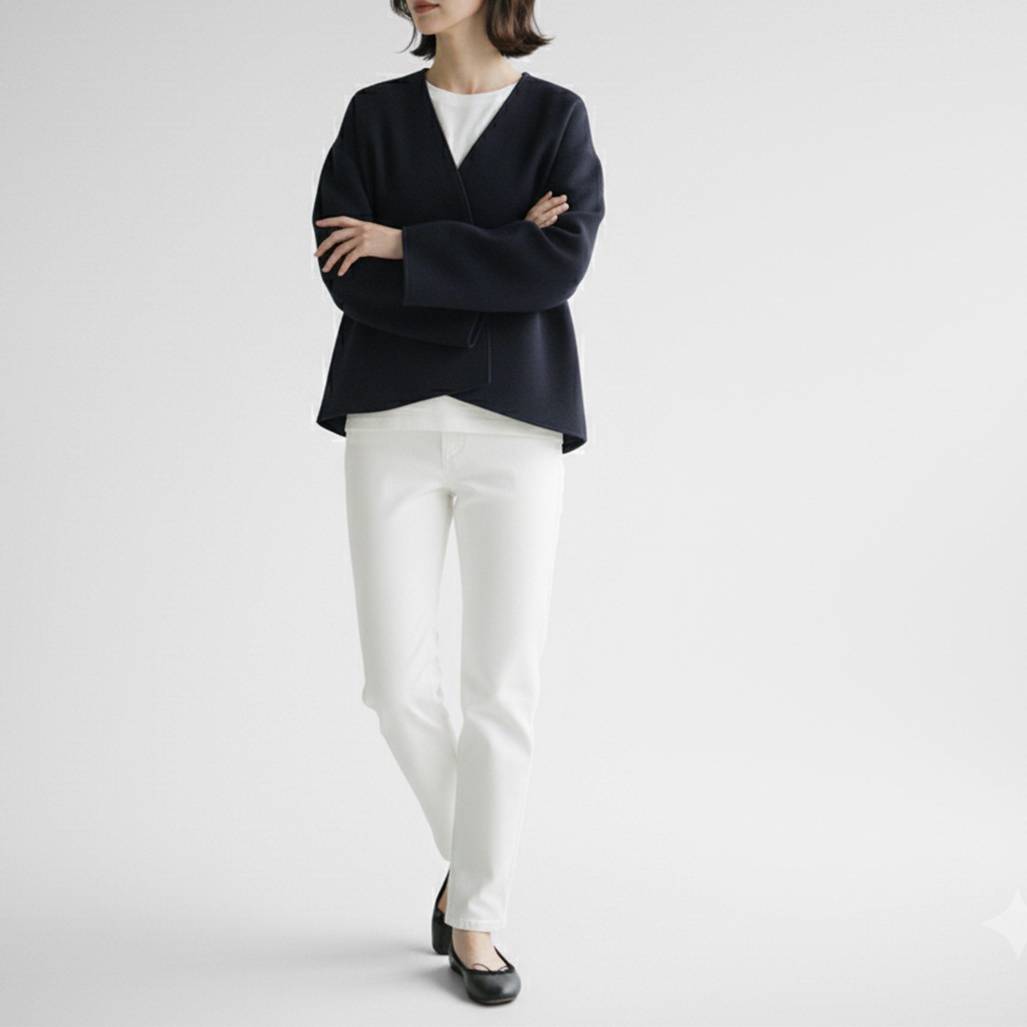 ドロップショルダーの綺麗なラインは女性らしさを演出し、コーディネートを品よくまとめてくれます