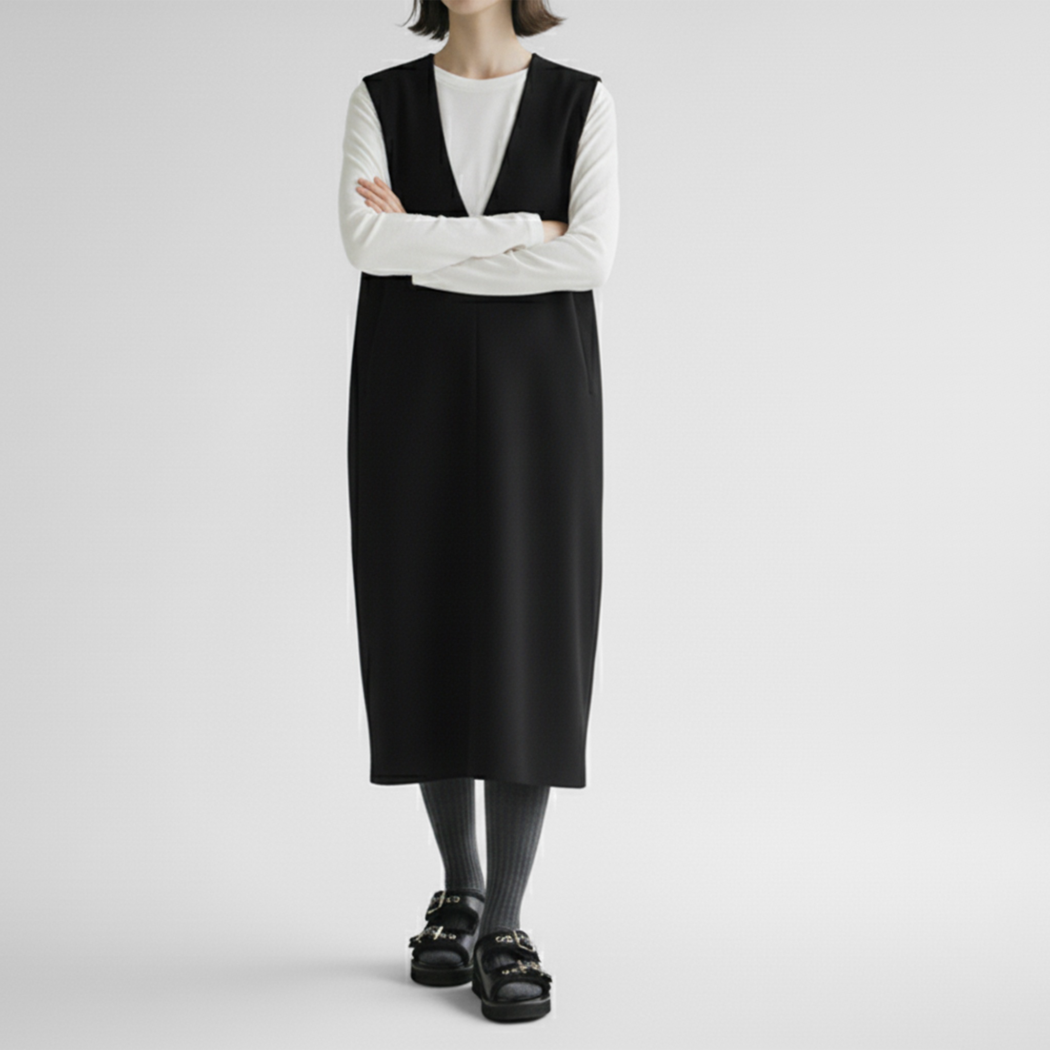 SACRAから届いた新作は、上質な圧縮メルトンウールを使用したノースリーブワンピース
