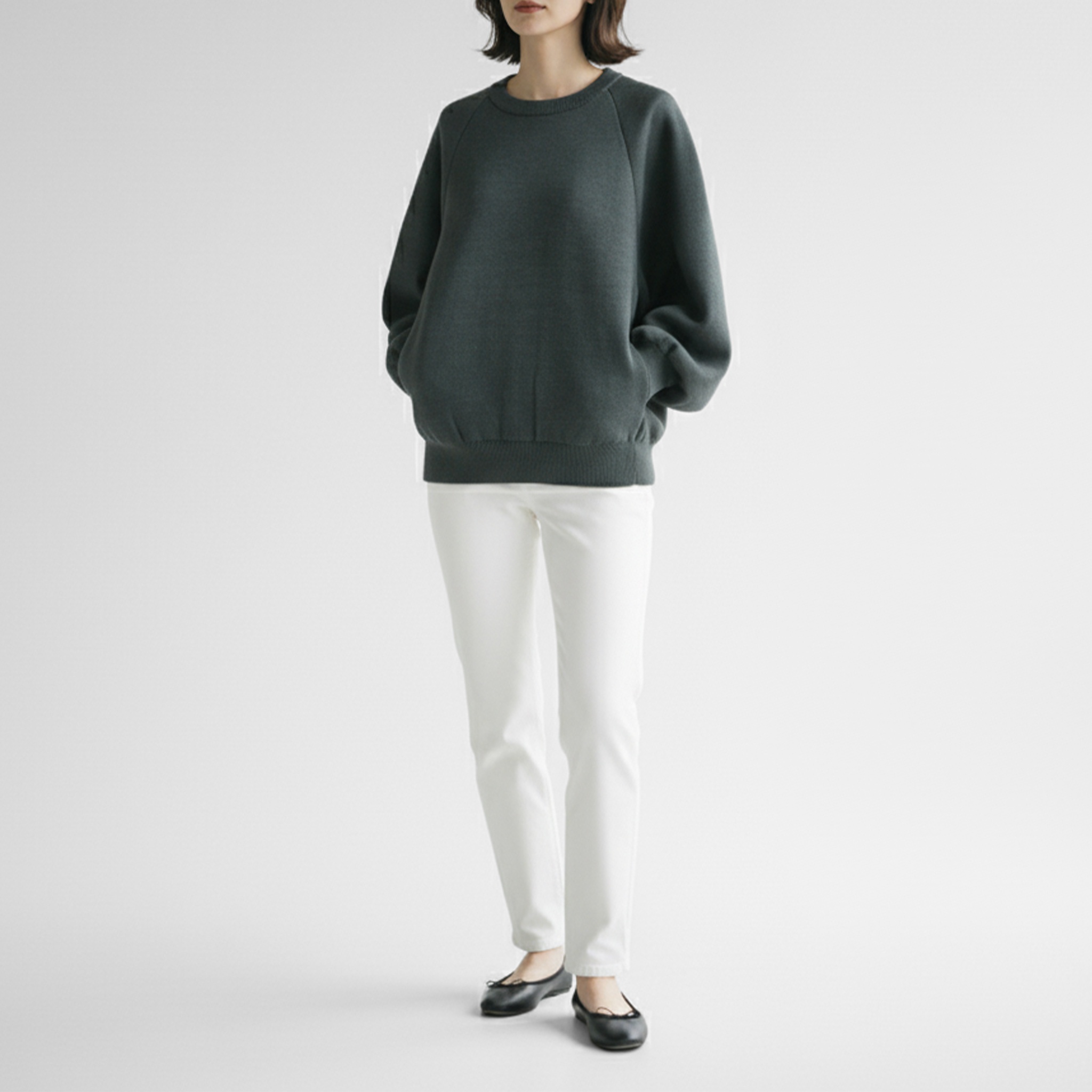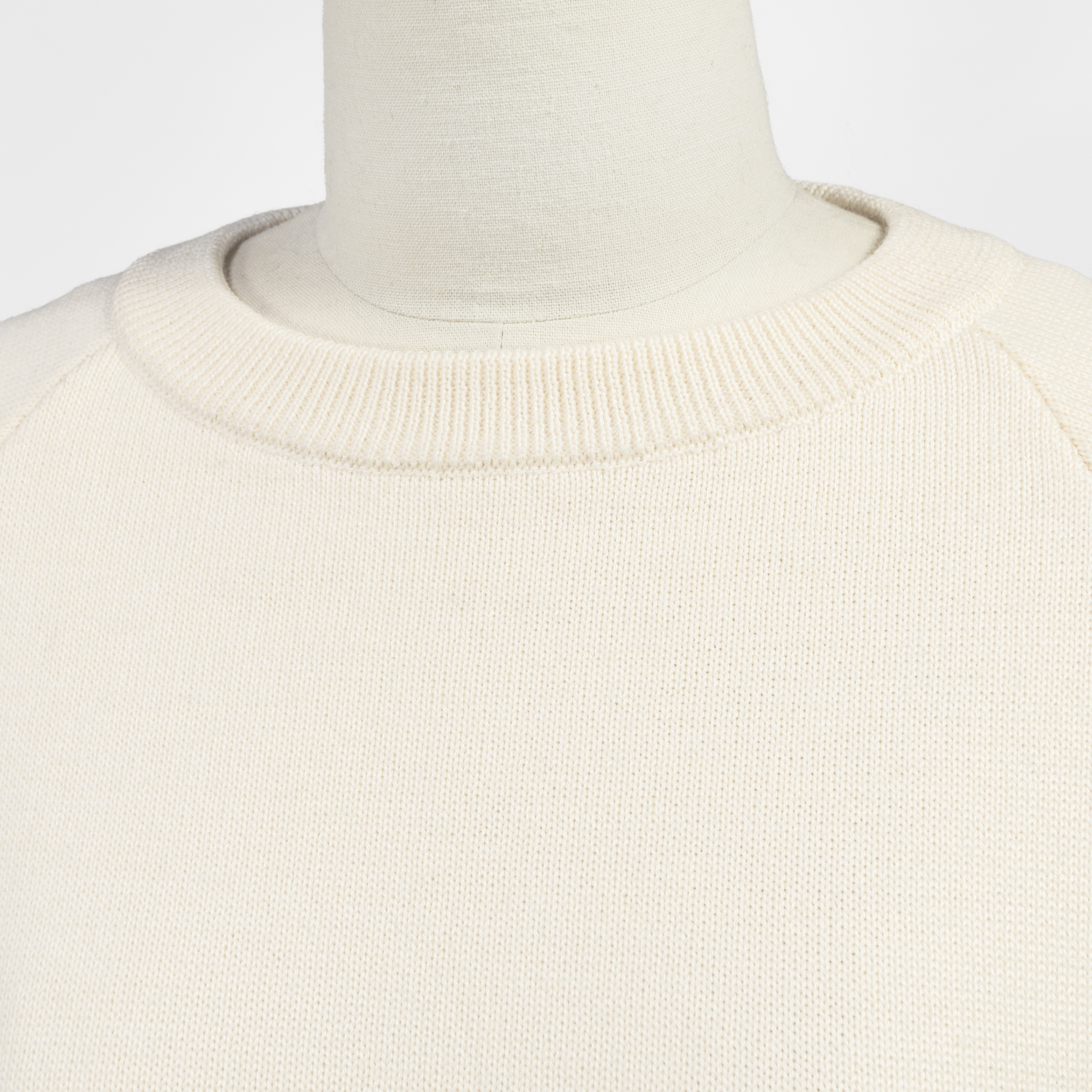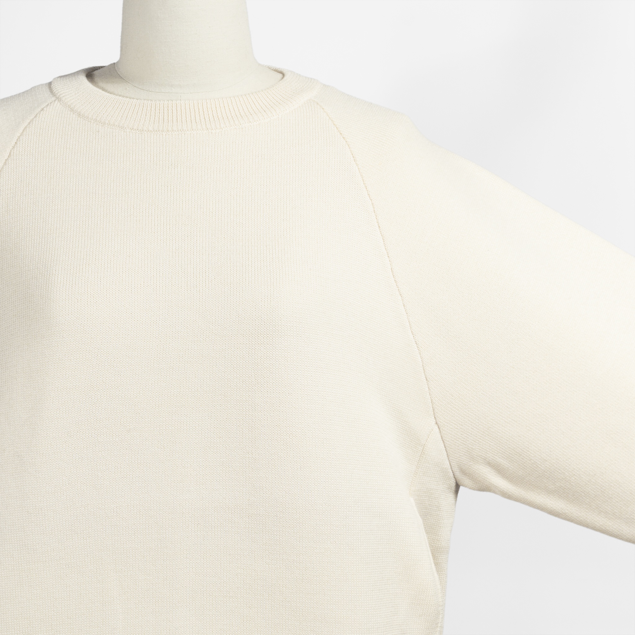 袖付けもラグランスリーブになっていて、スウェットのようなスポーティなデザインに仕上がっています