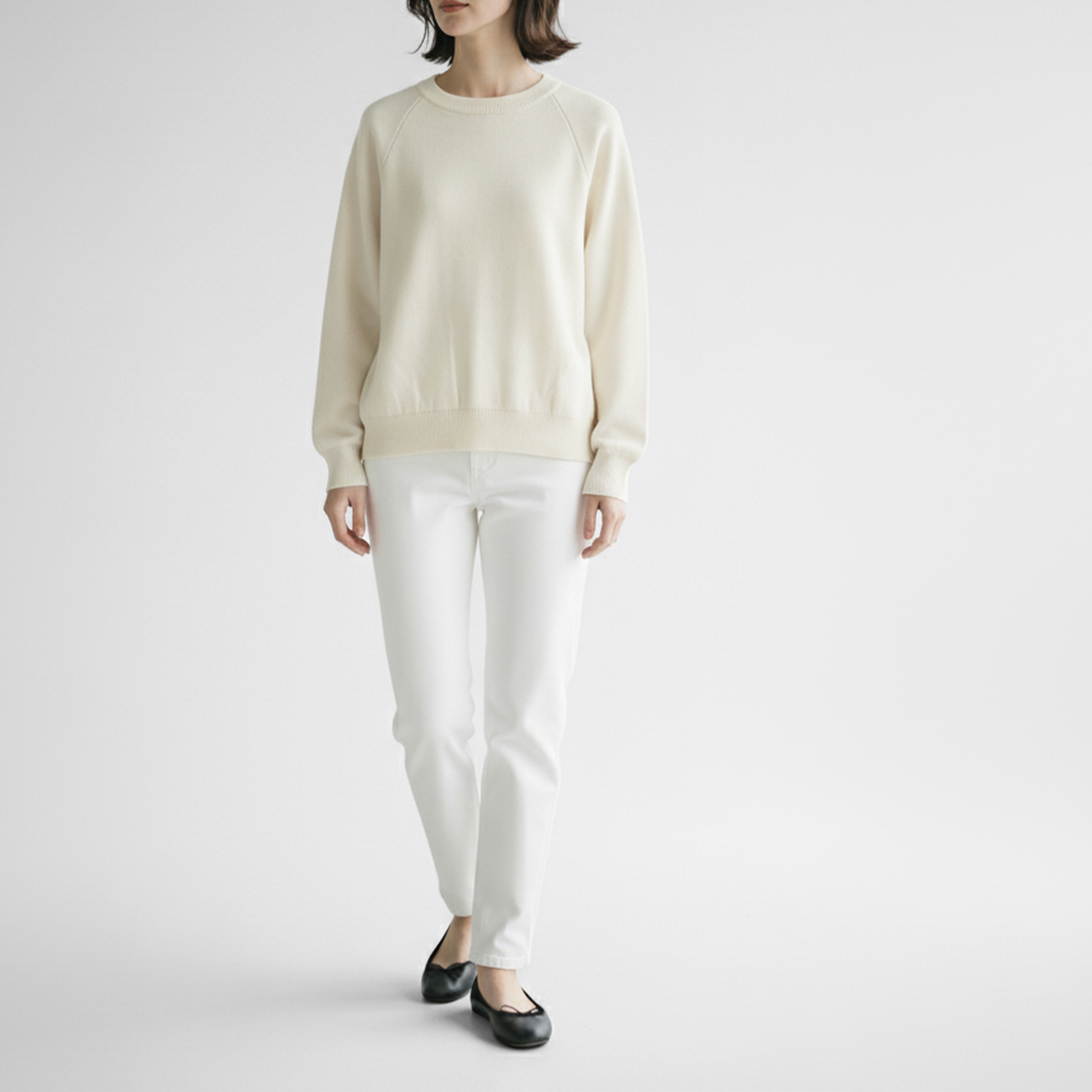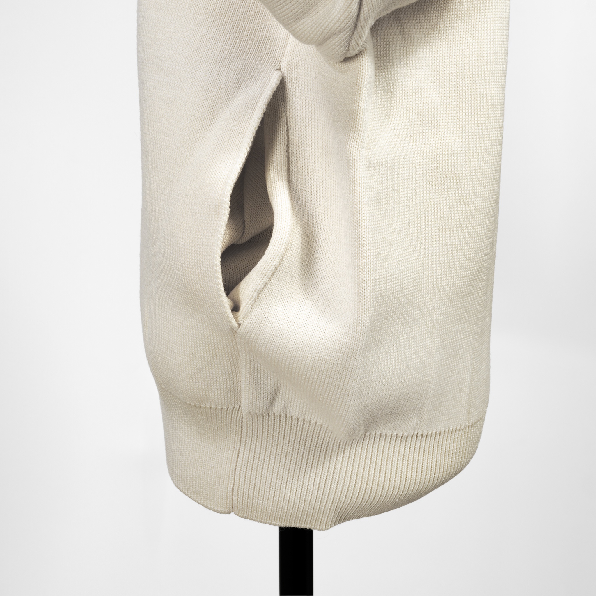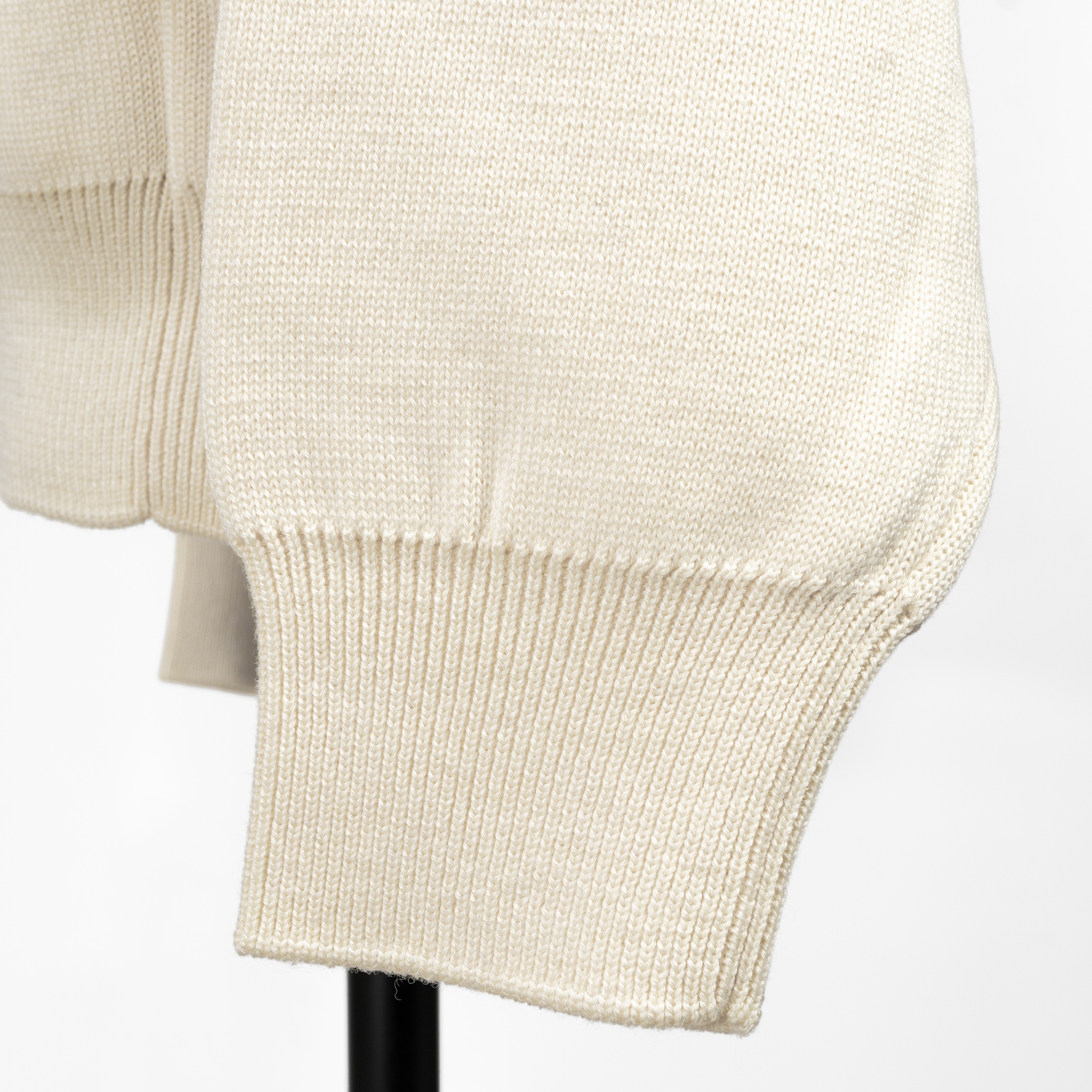 目の立った綺麗な編み目とダレない強度、そして毛玉ができにくくチクチクしないという理想のミドルゲージニットを実現