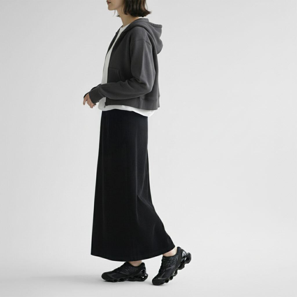 インナーにタートルネックを合わせる王道の着方はもちろん、パーカーやサロペットなどとレイヤードするのもアリ