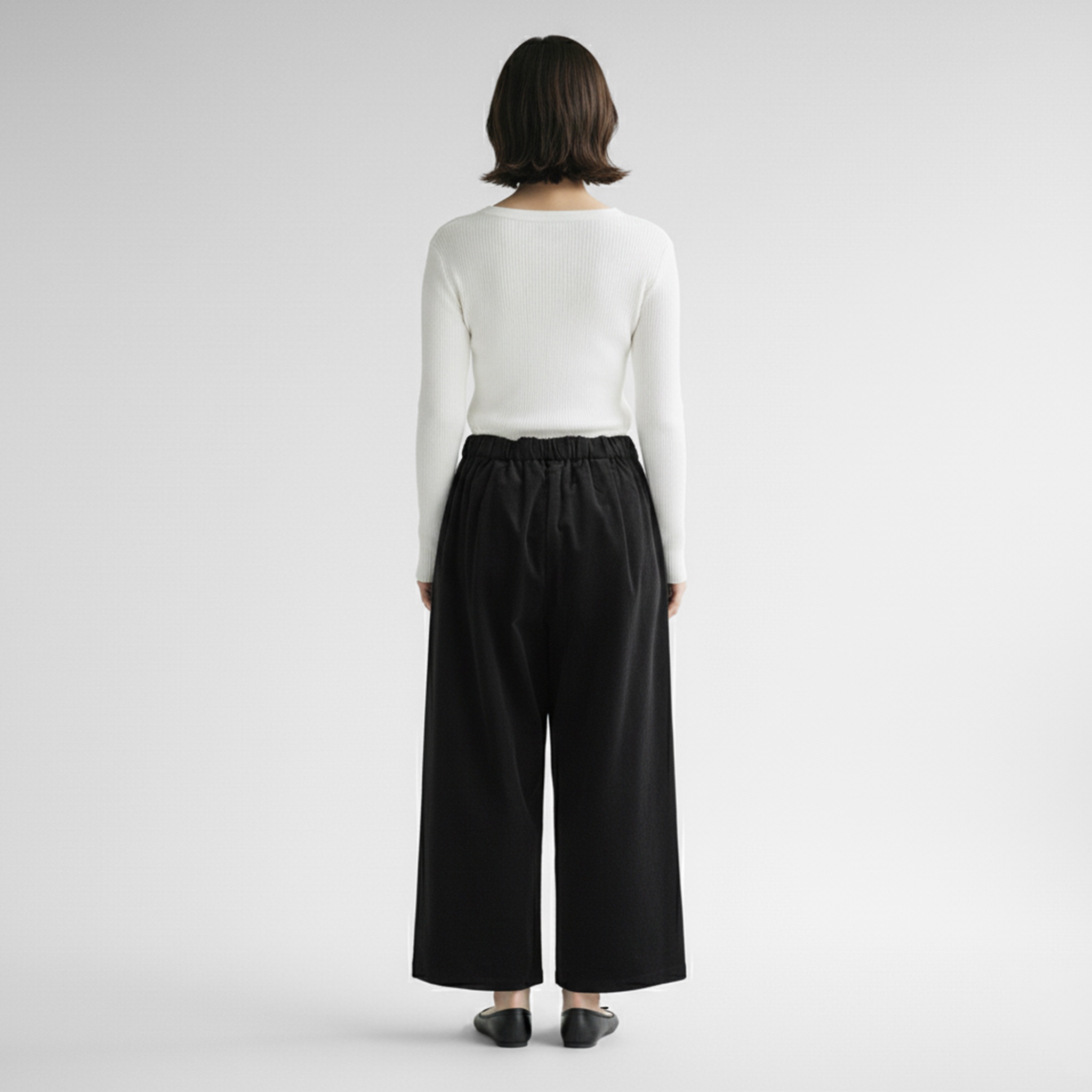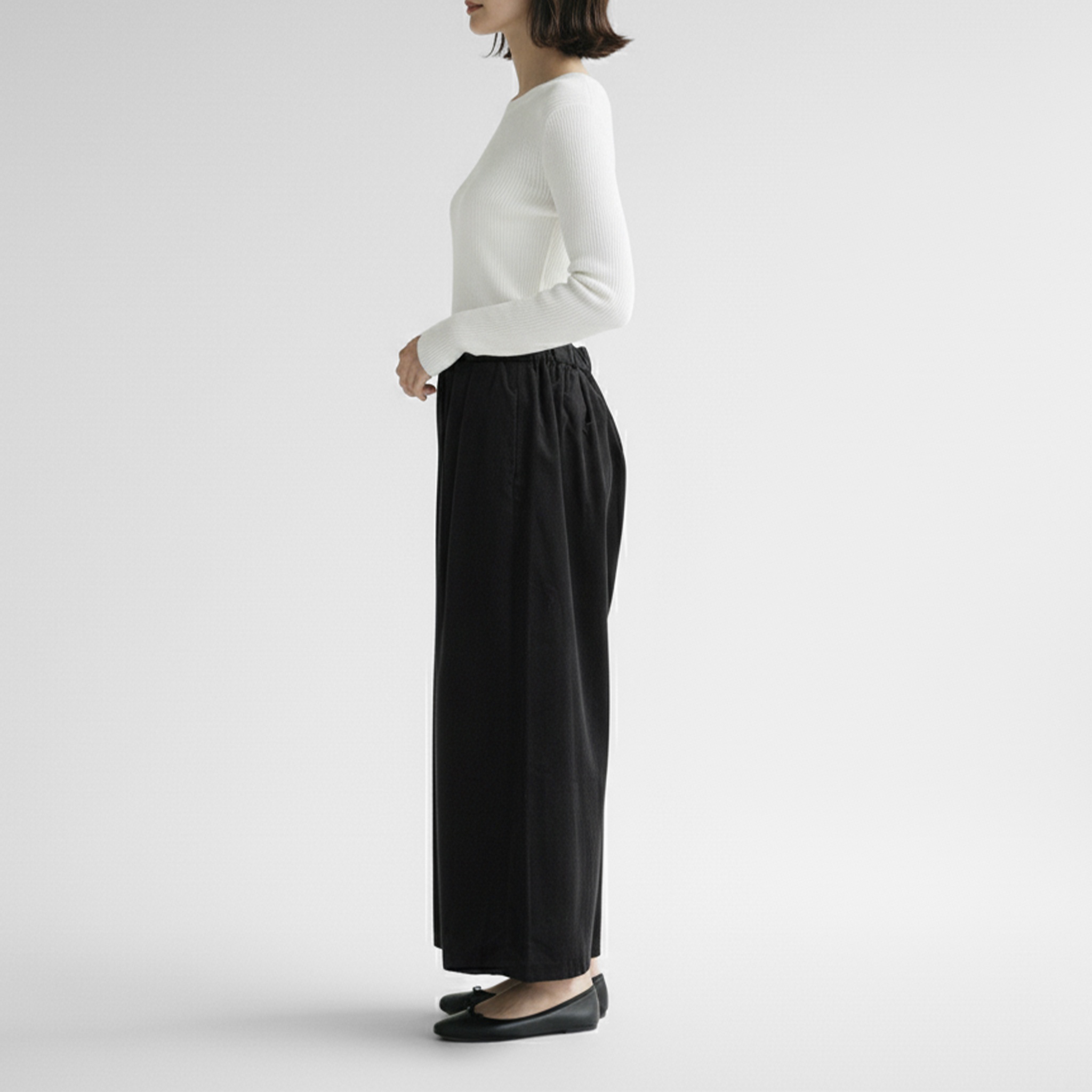 ゆるやかに広がるワイドシルエットが女性らしさを演出