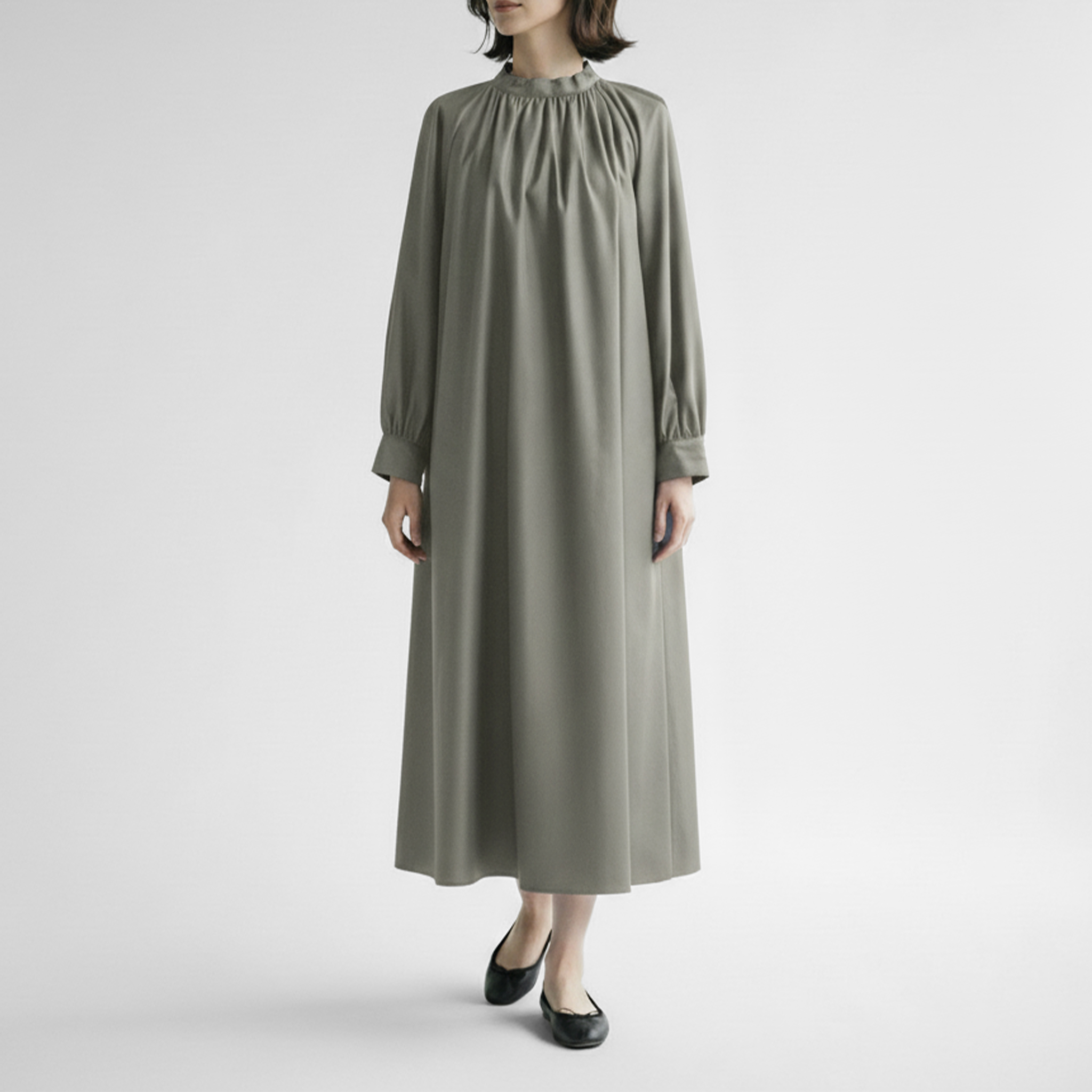 モックネックやタックディテールを採用したクラシカルで品のあるデザインは、普段使いはもちろんオケージョンにも対応可能